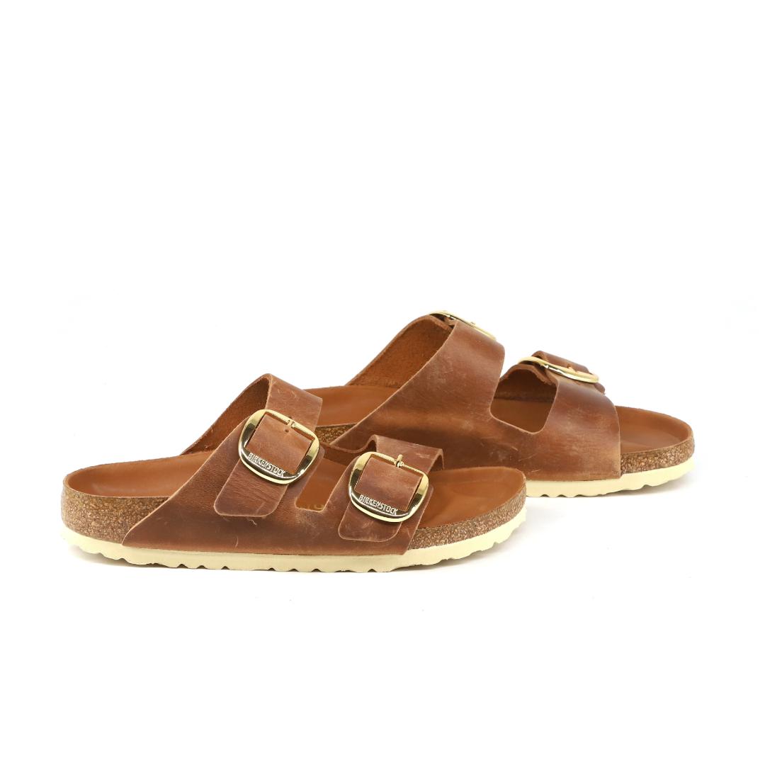 Le Birkenstock Arizona Big Buckle sono l’evoluzione di un vero classico che entusiasma il mondo della moda con il suo design essenziale. Presenta due fibbie ad ardiglione grandi ed eleganti, un bel particolare che spicca su questi sandali molto sobri. I plantari anatomici le rendono una scarpa cult dal confort unico. La tomaia è realizzata in pelle marrone particolarmente spessa e oliata, lavorata a cuciture aperte.