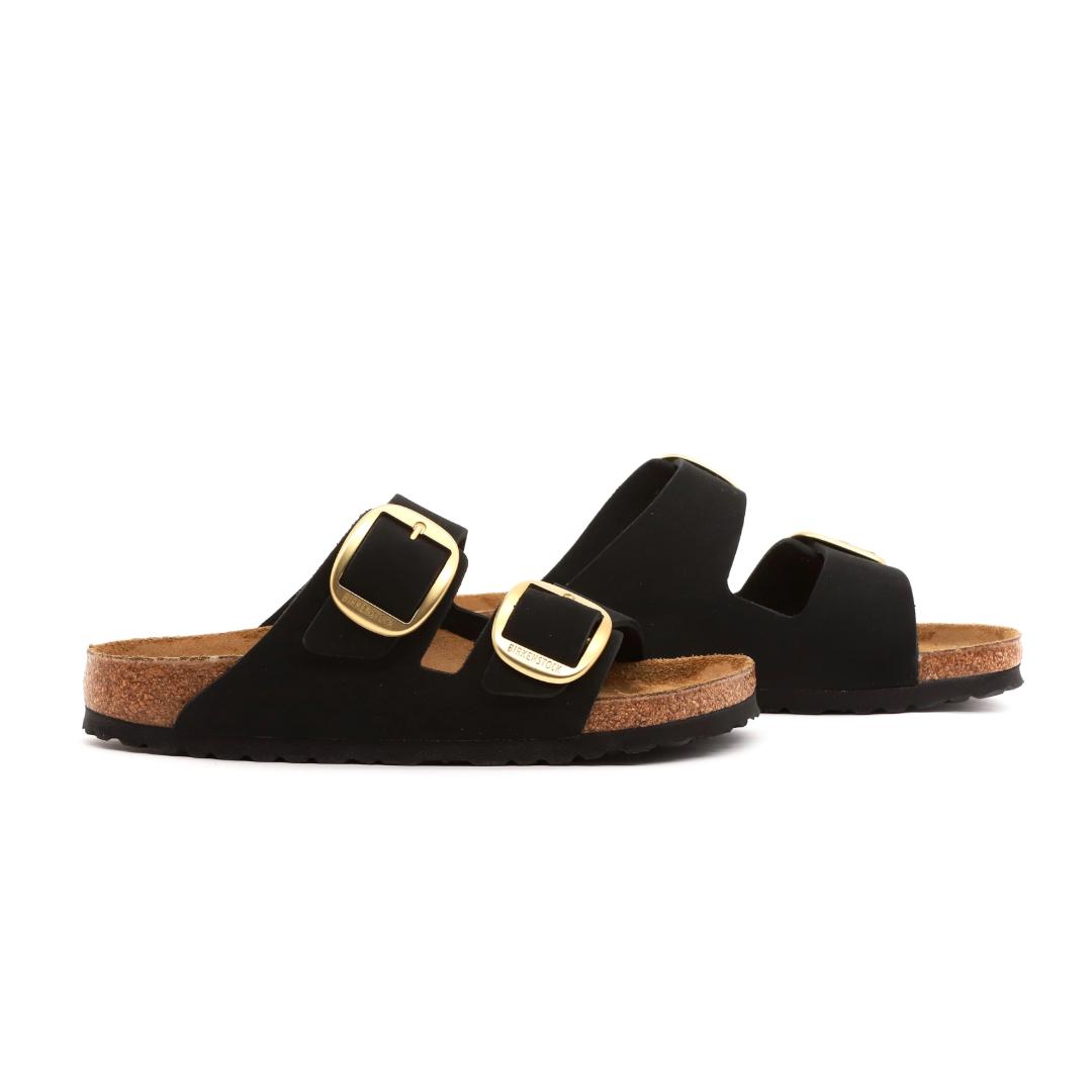 Le Birkenstock Arizona Big Buckle sono l’evoluzione di un vero classico che entusiasma il mondo della moda con il suo design essenziale. Presenta due fibbie ad ardiglione grandi ed eleganti, un bel particolare che spicca su questi sandali molto sobri. I plantari anatomici le rendono una scarpa cult dal confort unico. La tomaia è composta da pelle nera particolarmente spessa e lavorata a cuciture aperte.