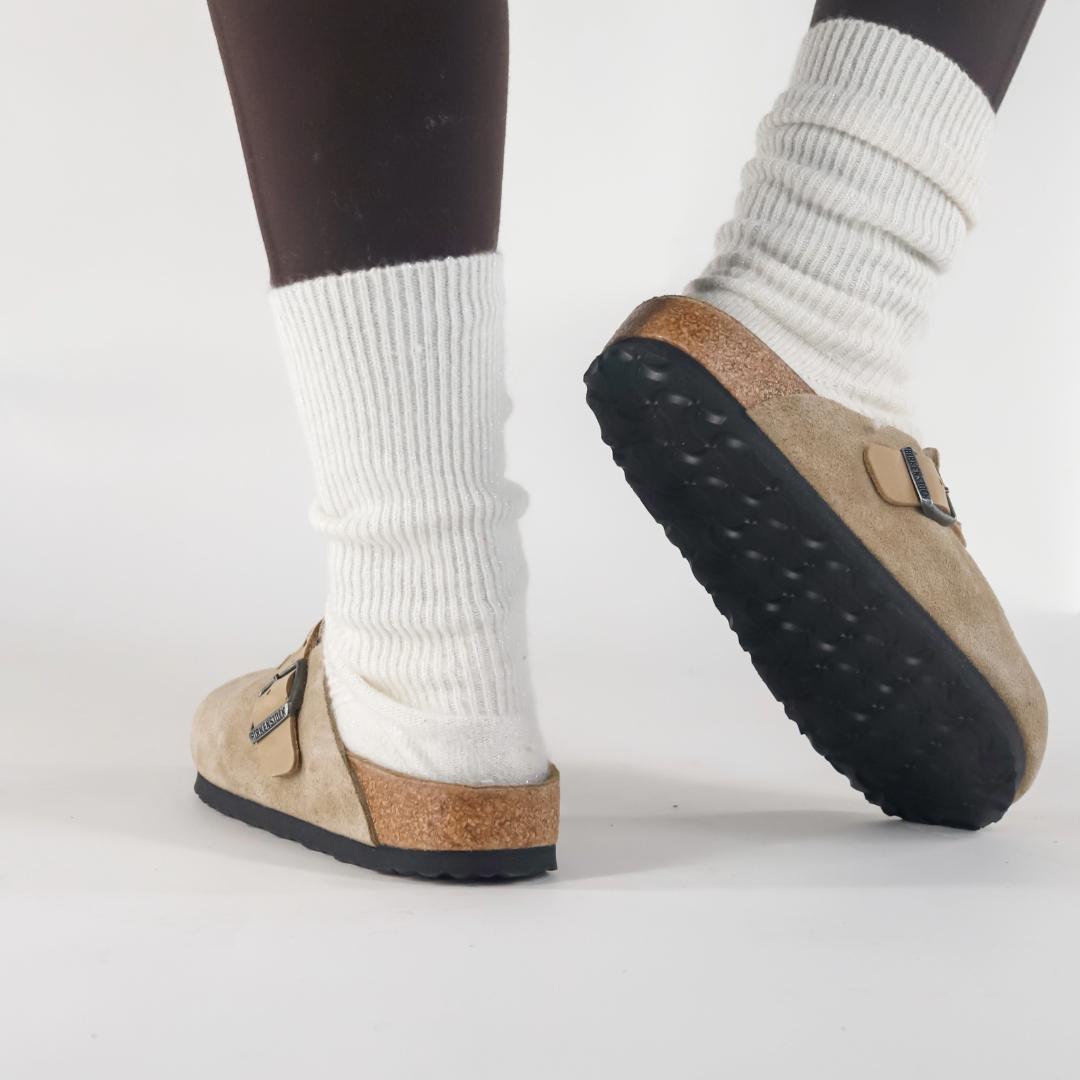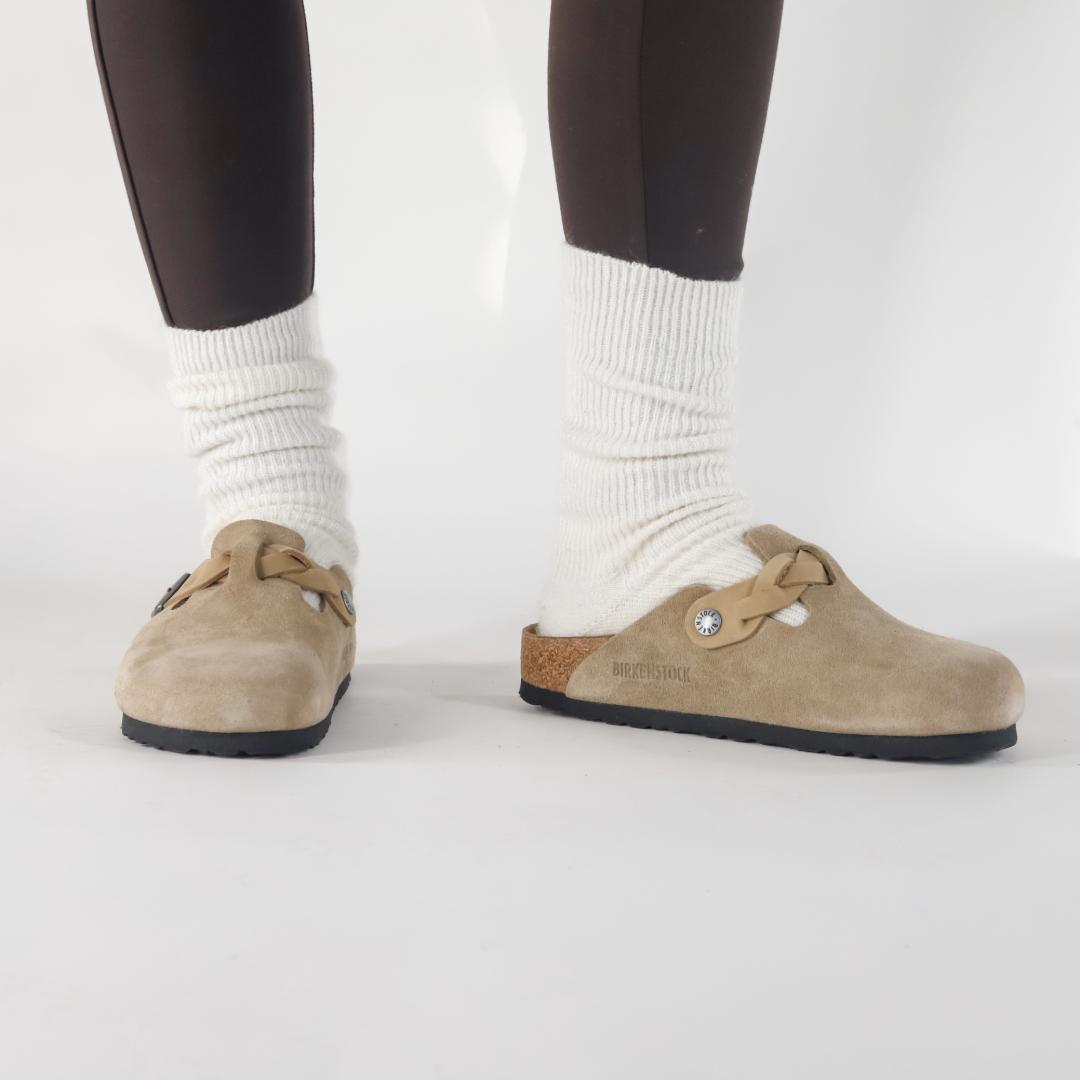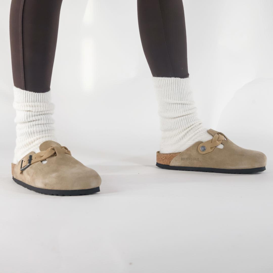 Le Birkenstock Boston sono un vero classico che può essere indossato senza problemi tutto l’anno. Sono realizzate in camoscio beige lavorata senza cuciture, con i cinturini lavorati con motivo a intreccio e la fibbia di metallo regolabile. Il plantare anatomico le rendono una scarpa cult dal confort unico. Grazie al loro raffinato design, i Boston sono entrati da tempo nella leggenda.