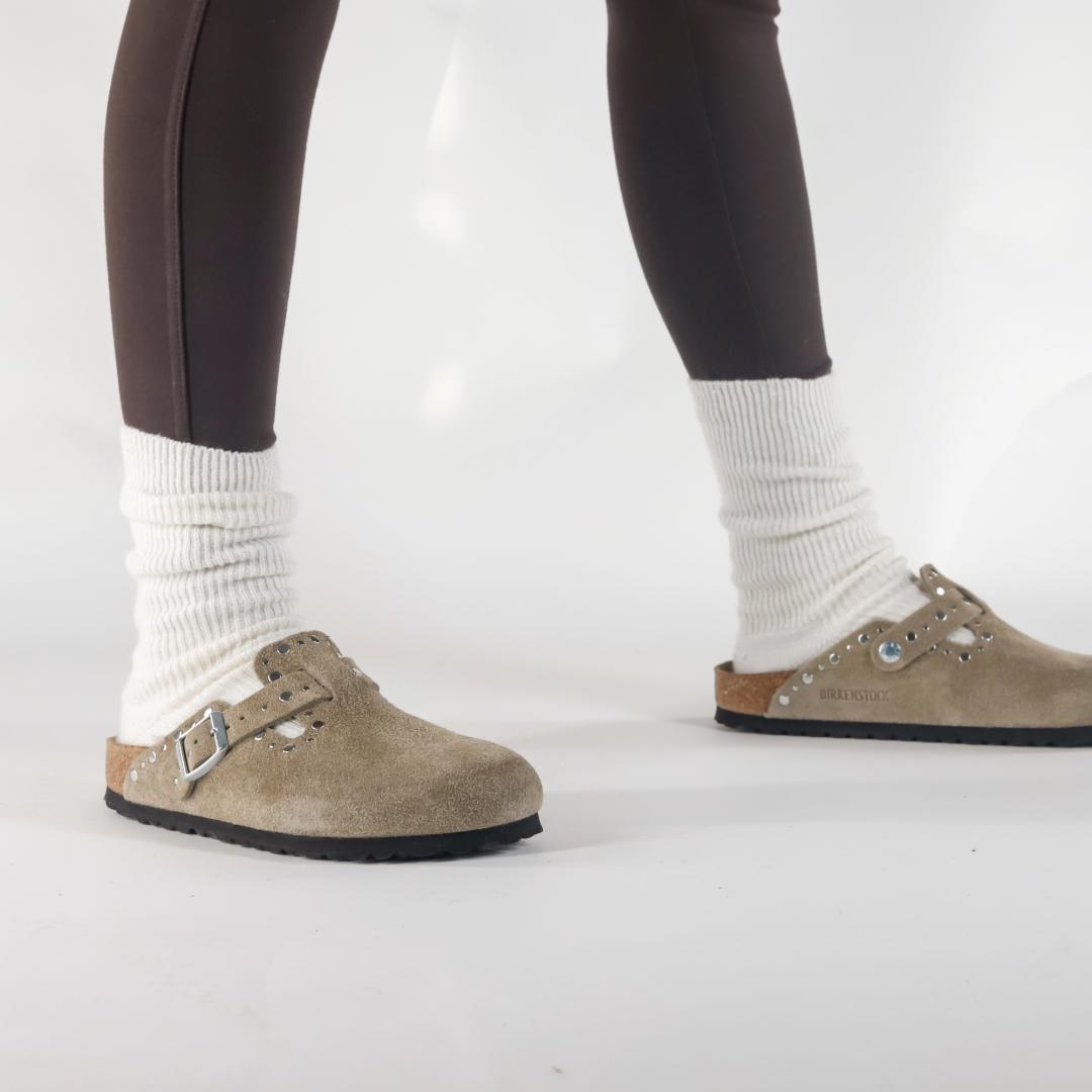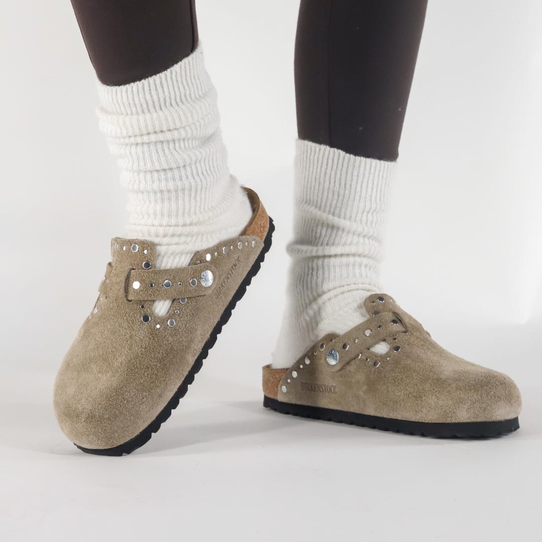 Le Birkenstock Boston sono un vero classico che può essere indossato senza problemi tutto l’anno. Questa variante è caratterizzata da rivetti applicati con precisione, inseriti saldamente nella pelle senza controparte e non troppo in profondità. Sono realizzate in camoscio beige lavorato senza cuciture, con un cinturino e la fibbia di metallo regolabile. Il plantare anatomico le rendono una scarpa cult dal confort unico. Grazie al loro raffinato design, i Boston sono entrati da tempo nella leggenda.