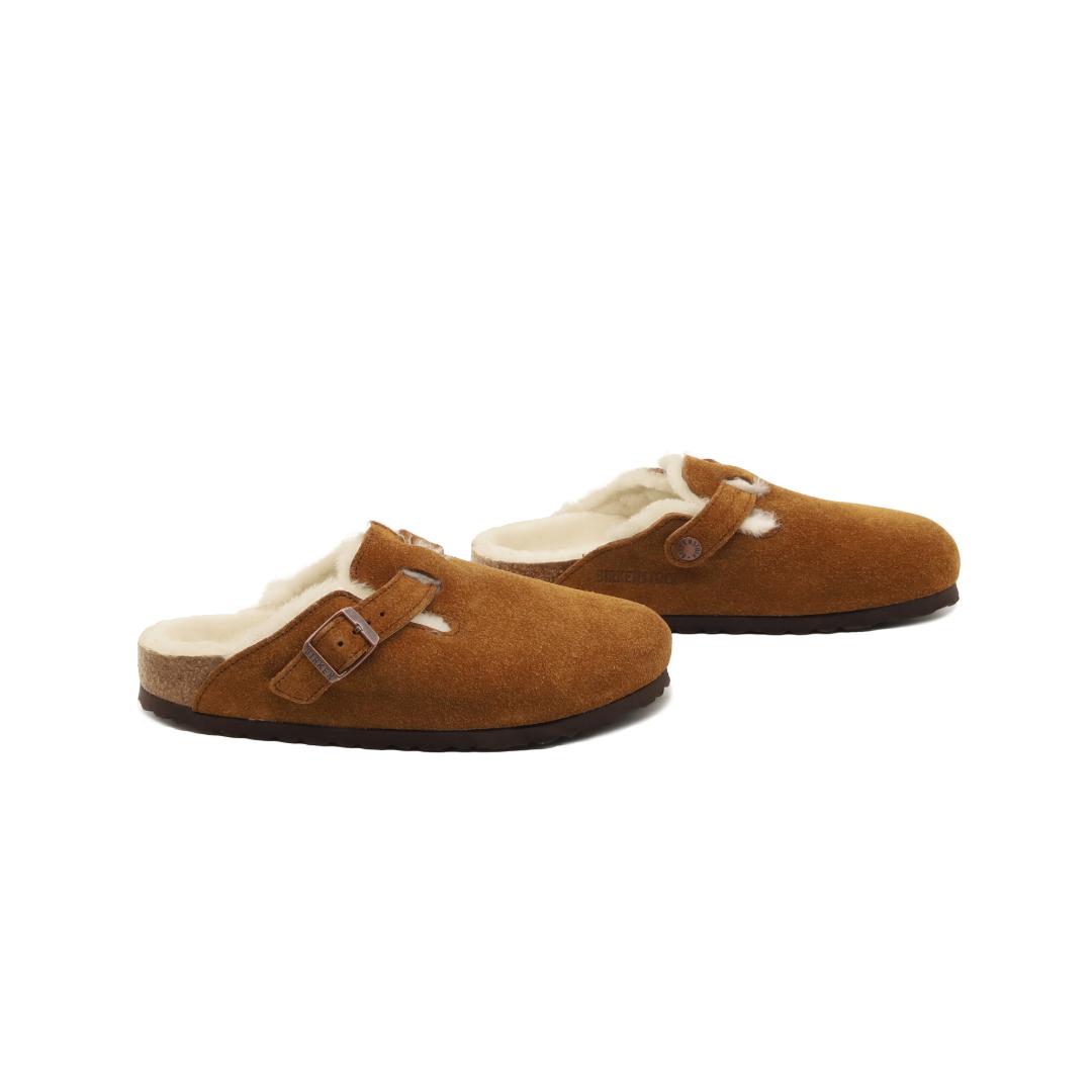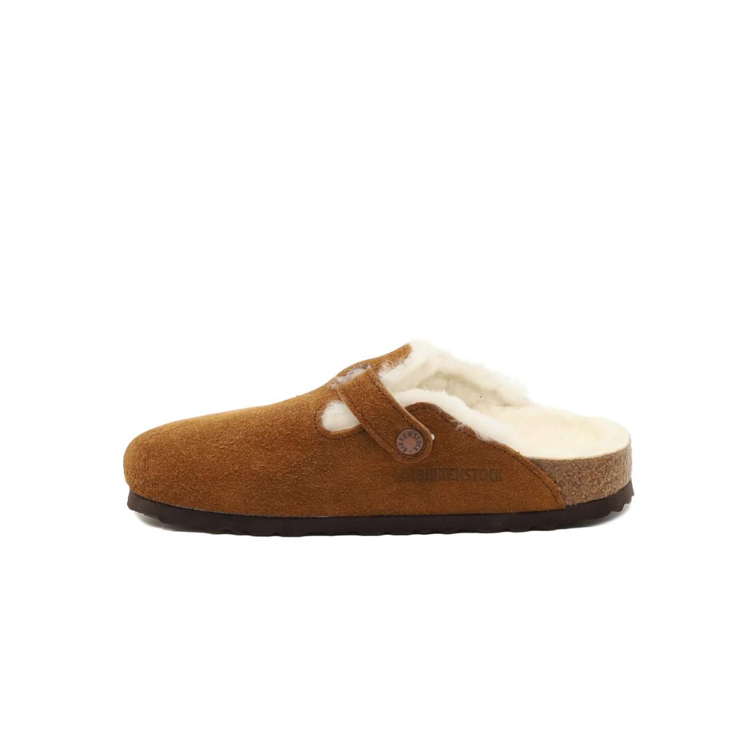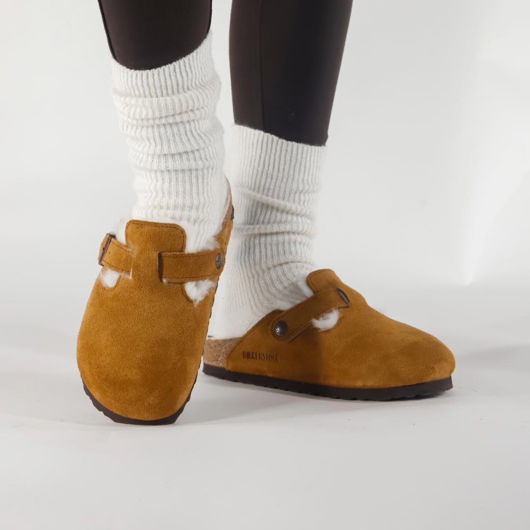 Le Birkenstock Boston Shearling sono un vero classico che può essere indossato senza problemi tutto l’anno. Sono realizzate in camoscio nocciola lavorato senza cuciture, foderate di morbida pelliccia naturale di agnello, presente sia nel sottopiede che nel rivestimento interno dei cinturini regolabili mediate la fibbia di metallo. Il plantare anatomico le rendono una scarpa cult dal confort unico. Grazie al loro raffinato design, i Boston sono entrati da tempo nella leggenda.