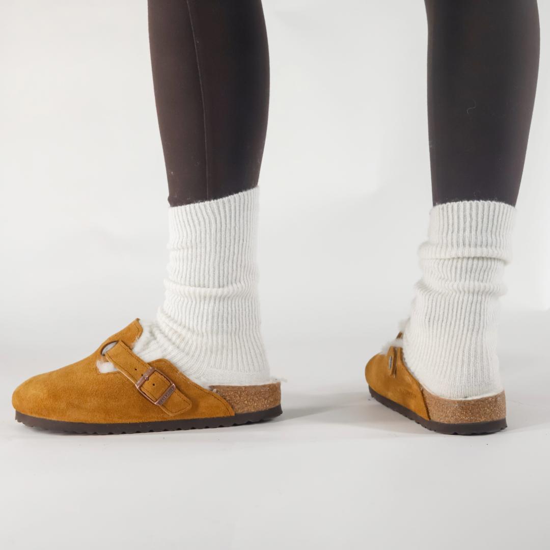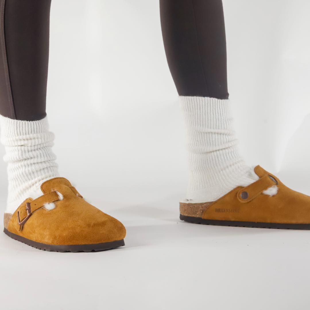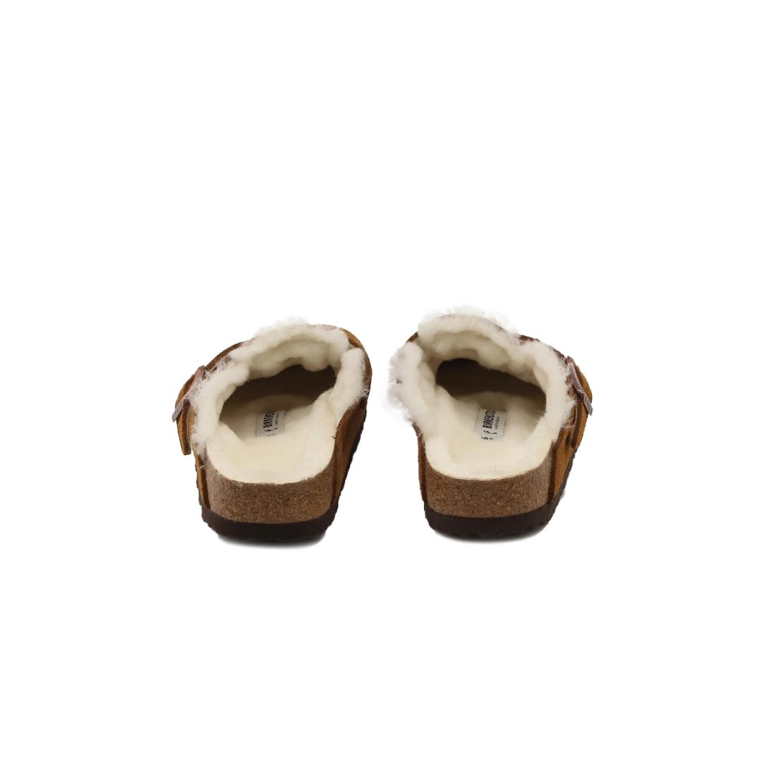 Le Birkenstock Boston Shearling sono un vero classico che può essere indossato senza problemi tutto l’anno. Sono realizzate in camoscio nocciola lavorato senza cuciture, foderate di morbida pelliccia naturale di agnello, presente sia nel sottopiede che nel rivestimento interno dei cinturini regolabili mediate la fibbia di metallo. Il plantare anatomico le rendono una scarpa cult dal confort unico. Grazie al loro raffinato design, i Boston sono entrati da tempo nella leggenda.