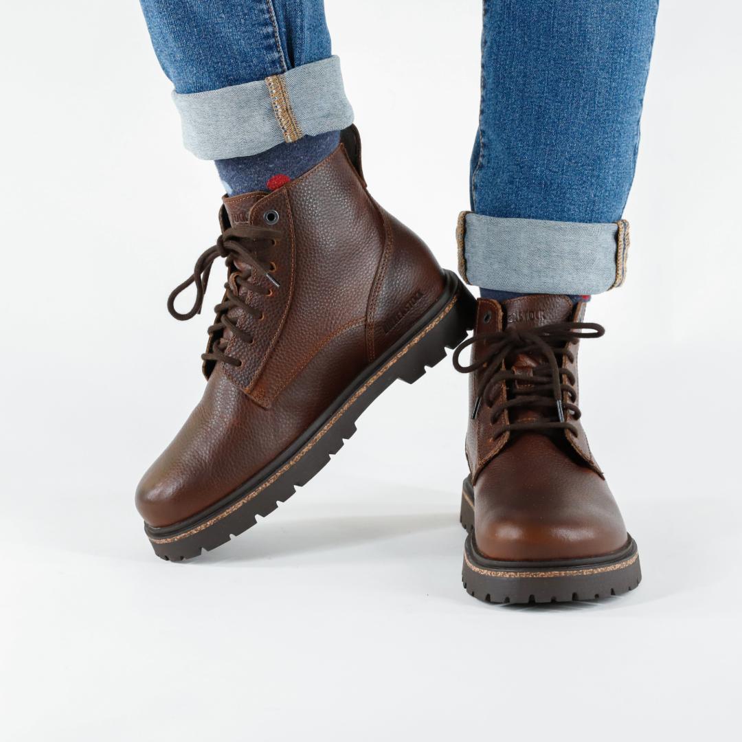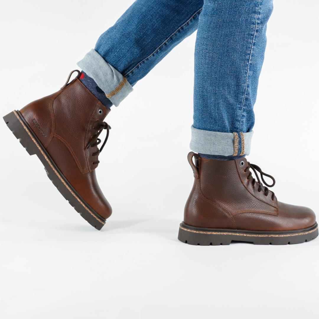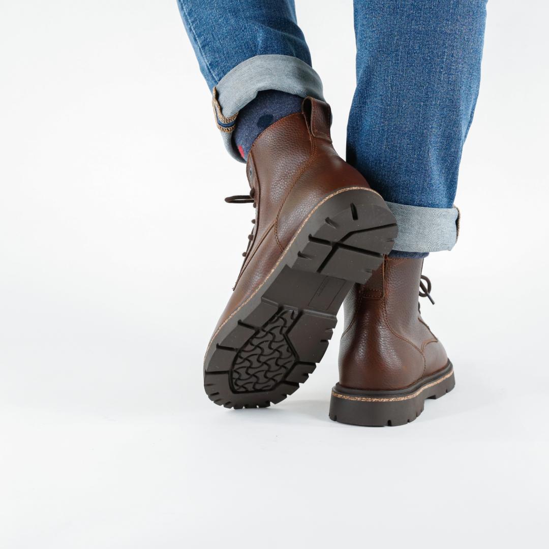 Le Birkenstock Highwood sono i nuovi stivaletti stile anfibio, realizzati in pelle marrone e con un caratteristico dettaglio in sughero nella suola. Il plantare Deep Blue è comodo e leggero e rende questi stivaletti così confortevoli che possono essere indossati anche per lunghe passeggiate o per un giro in città.