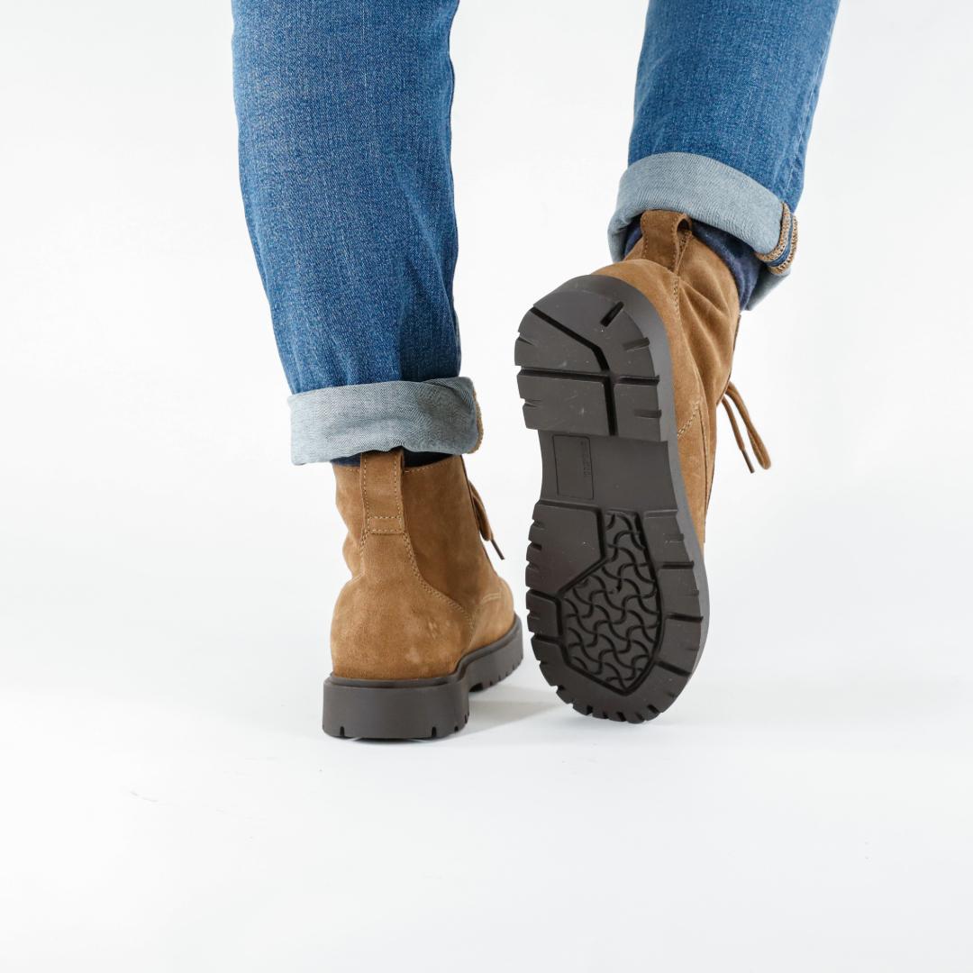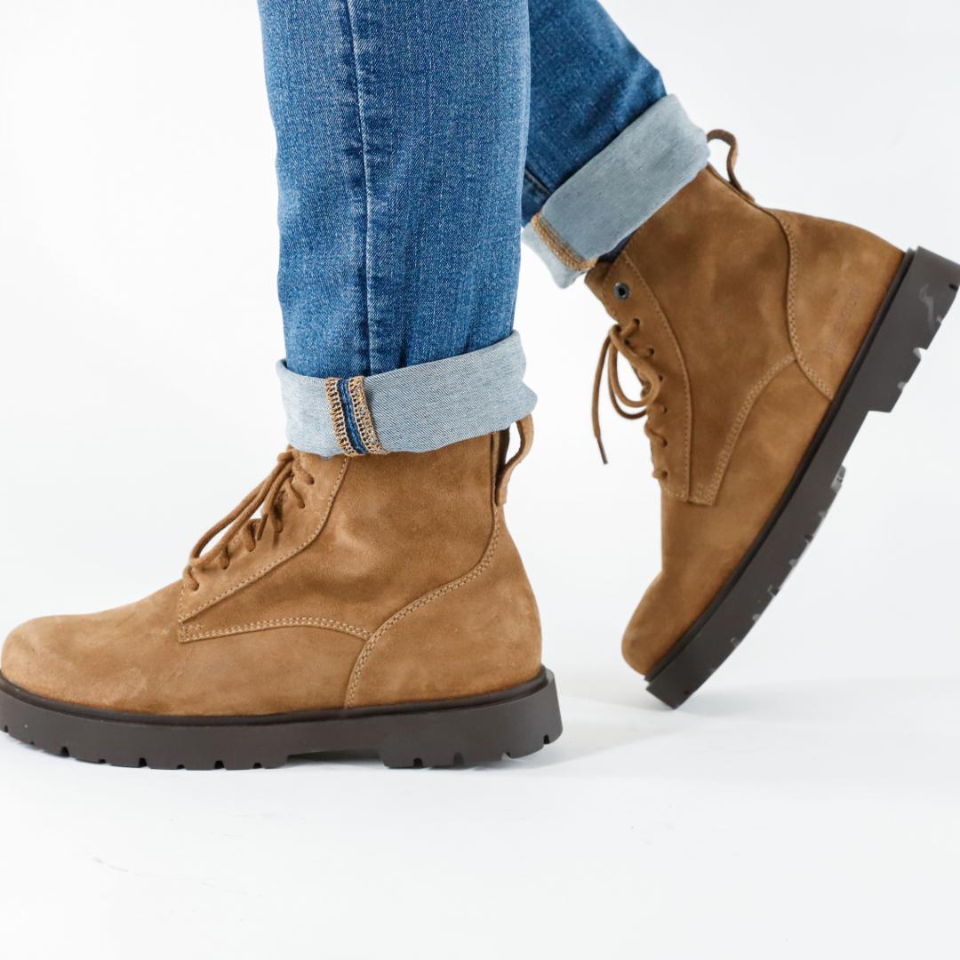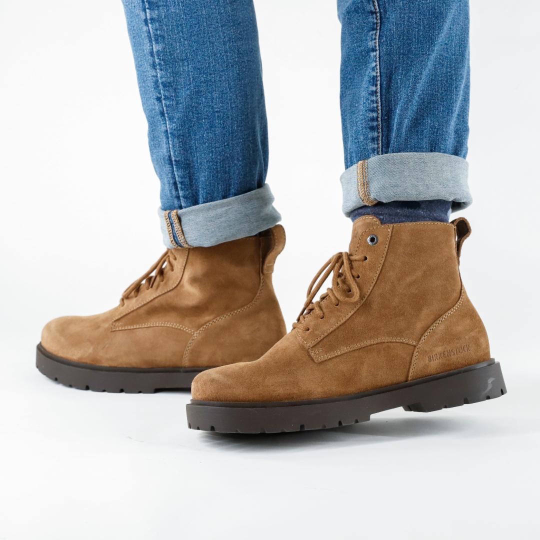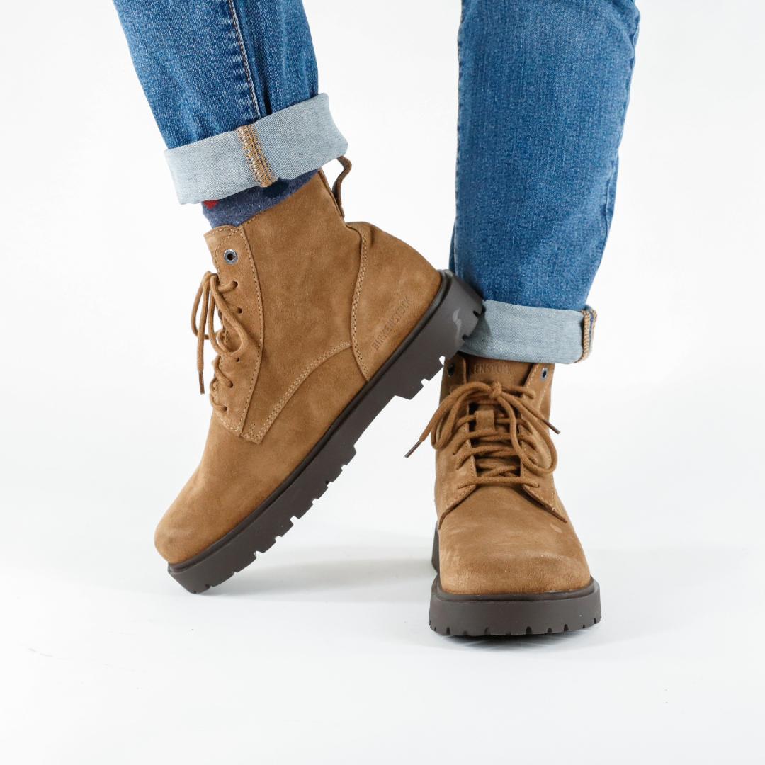 Le Birkenstock Highwood sono i nuovi stivaletti stile anfibio, realizzati in camoscio colore dark tea e con un caratteristico dettaglio in sughero nella suola. Il plantare Deep Blue è comodo e leggero e rende questi stivaletti così confortevoli che possono essere indossati anche per lunghe passeggiate o per un giro in città.
