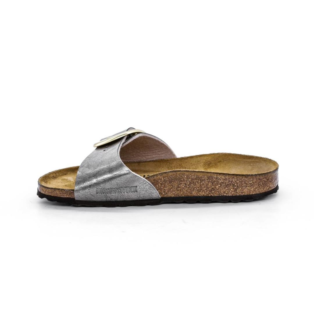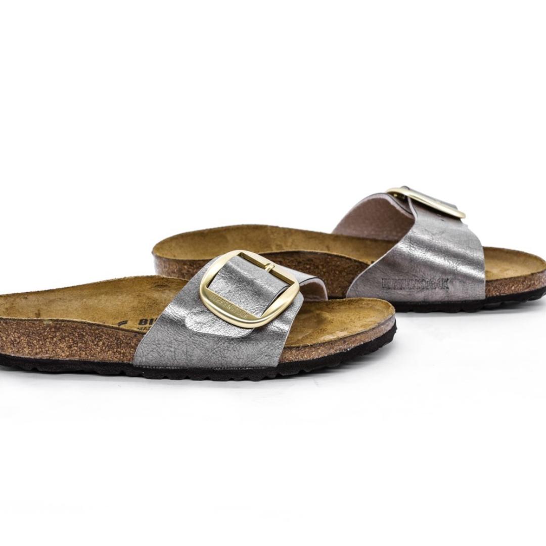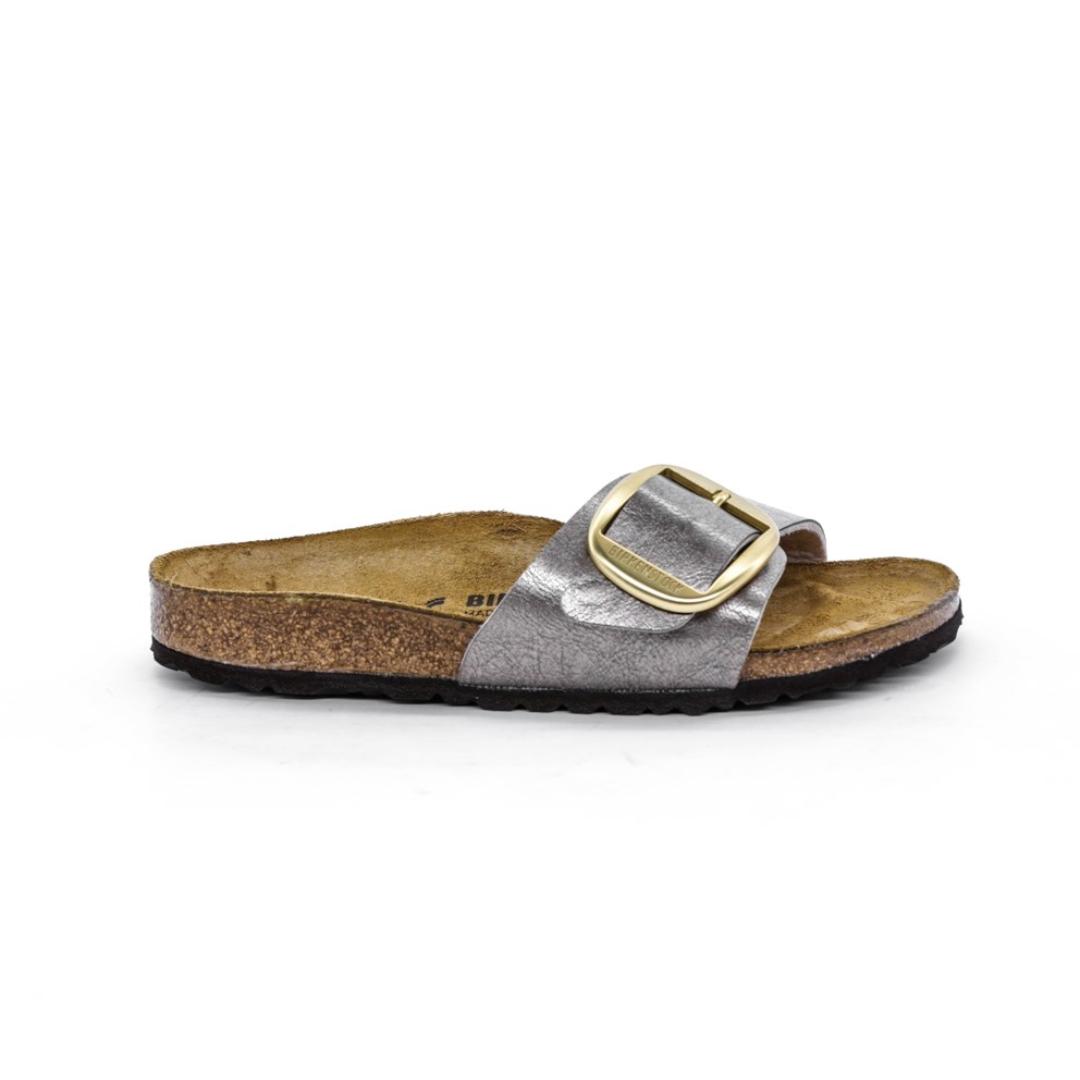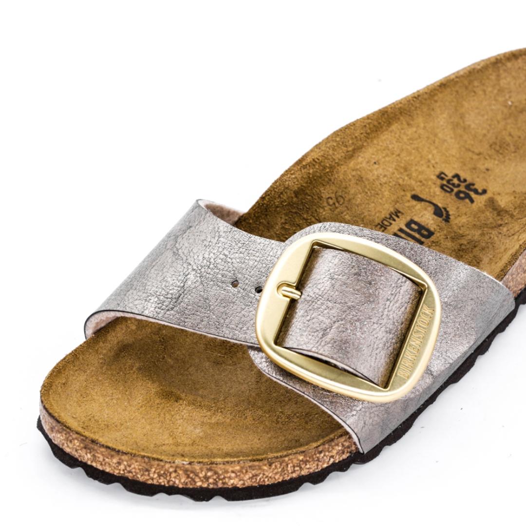 Le Birkenstock Madrid Big Buckle sono l’evoluzione di un vero classico che entusiasma il mondo della moda con il suo design essenziale. Presenta una fibbia ad ardiglione grande ed elegante, un bel particolare che spicca su queste ciabatte molto sobrie. La tomaia color bronzo è realizzata in materiale Birko-Flor dermoaffine e resistente. I plantari anatomici le rendono una scarpa cult dal confort unico.