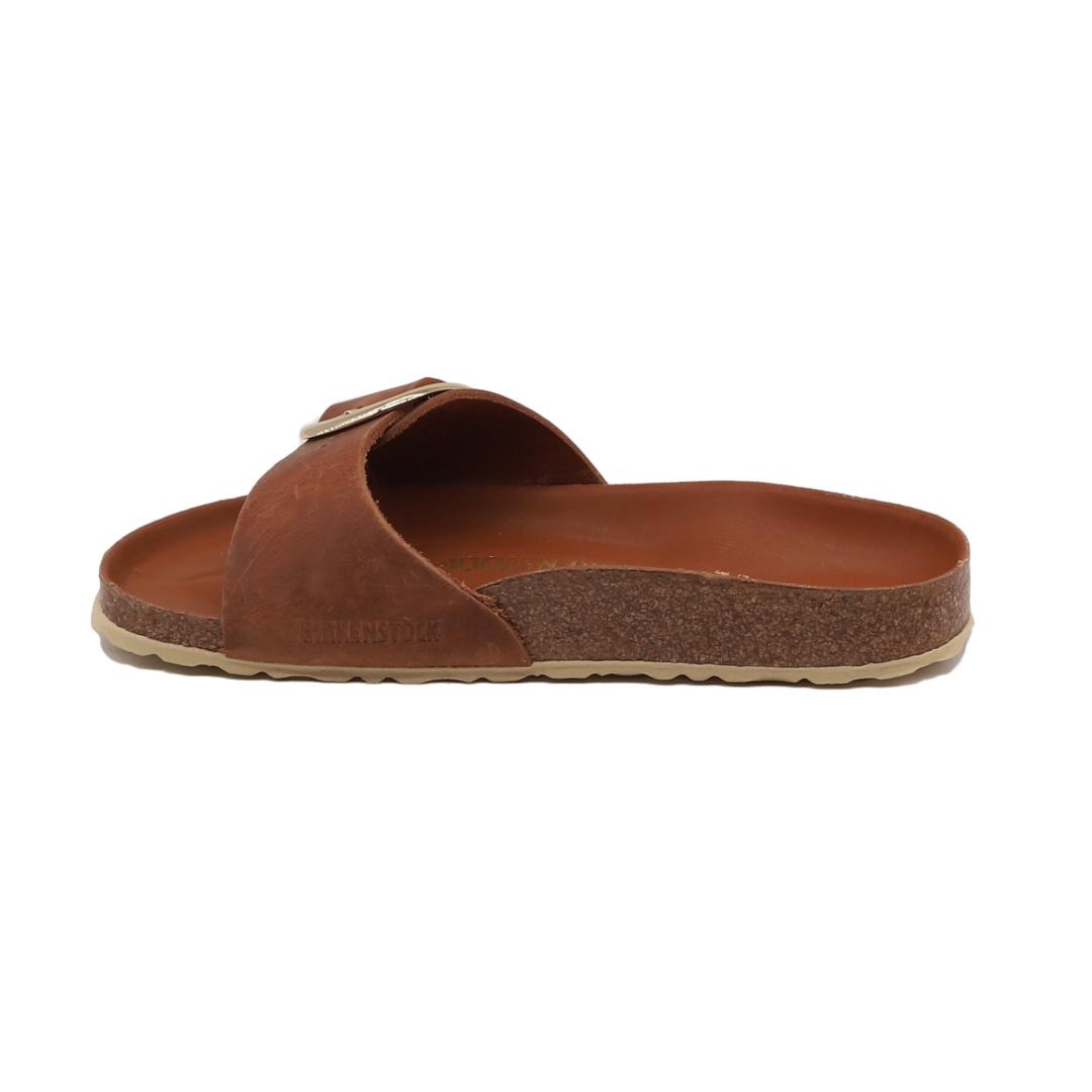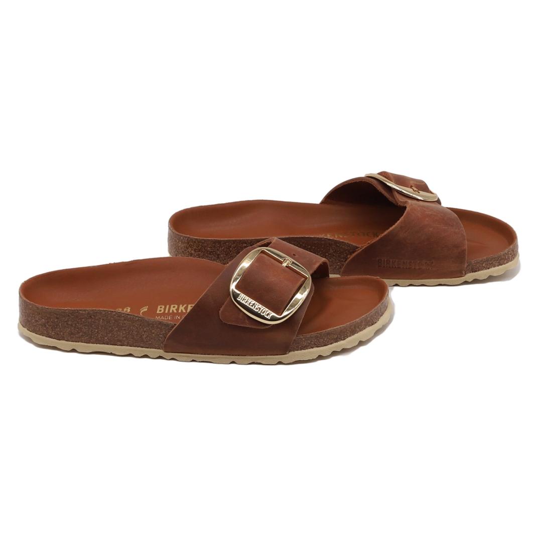 Le Birkenstock Madrid Big Buckle sono l’evoluzione di un vero classico che entusiasma il mondo della moda con il suo design essenziale. Presenta una fibbia ad ardiglione grande ed elegante, un bel particolare che spicca su queste ciabatte molto sobrie. Il sottopiede del plantare semi-exquisit è rivestito in morbida pelle liscia in colore coordinato alla scarpa. La tomaia è composta da pelle cuoio particolarmente spessa e oliata, lavorata a cuciture aperte.