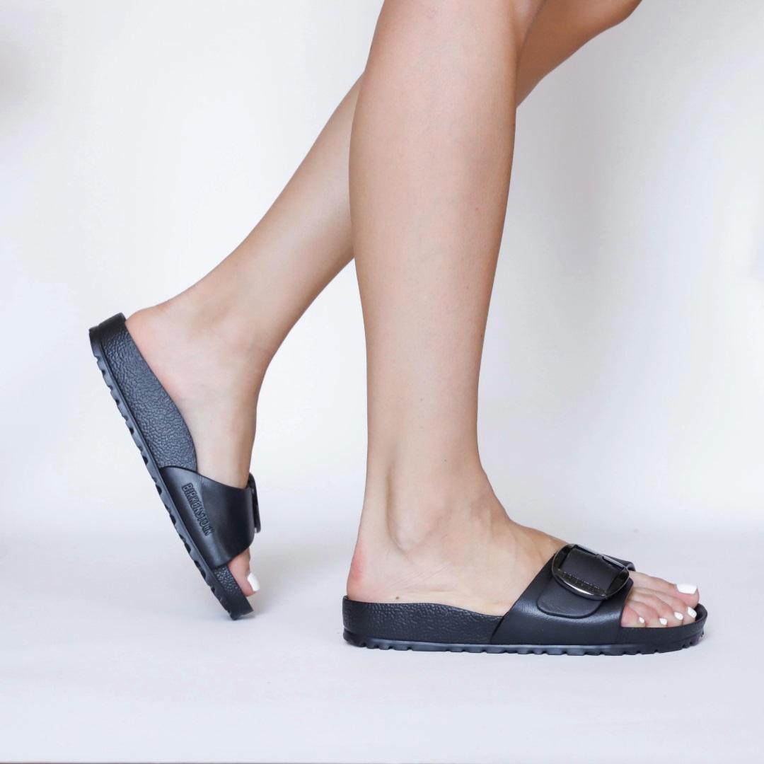 Le Birkenstock Madrid Eva sono la nuova versione elegante di un vero classico del brand tedesco leader mondiale, che conquista le donne da sempre. Il materiale plastico EVA è di alta qualità, non ha odore o sostanze inquinanti, è molto leggero, altamente elastico, impermeabile e dermoaffine. La tomaia nera è regolabile tramite una fibbia ad ardiglione grande ed elegante, un dettaglio che valorizza il nuovo design, ed il plantare anatomico le rendono una scarpa cult dal confort unico.