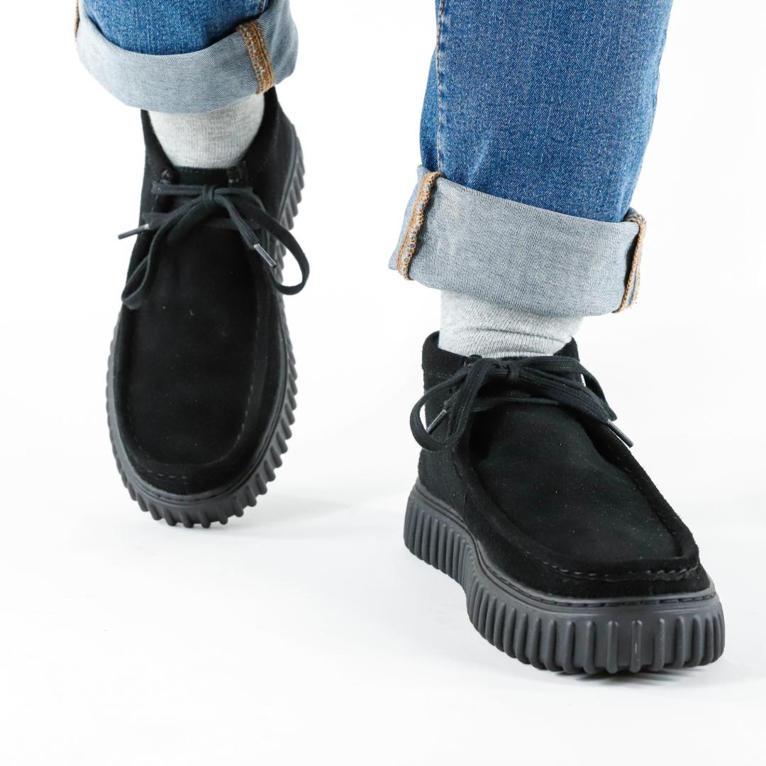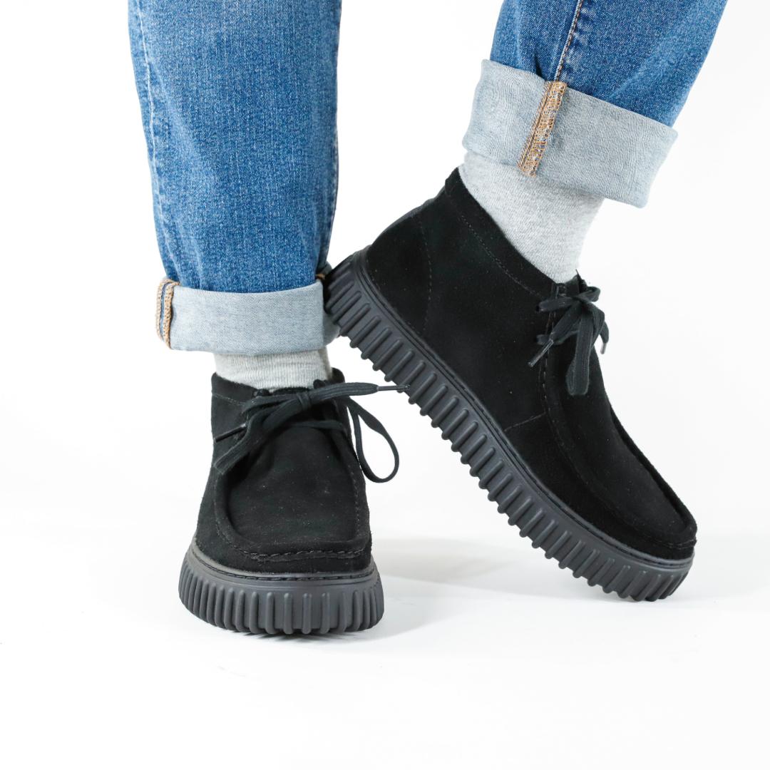Le Clarks Torhill Hi arrivano direttamente dagli archivi storici con uno spiccato stile anni 90. Sono realizzate in camoscio nero con le forme inconfondibili delle iconiche Wallabee, caratterizzate da una robusta suola con inserto in EVA per un confort unico. Una vera scarpa casual di ispirazione storica.