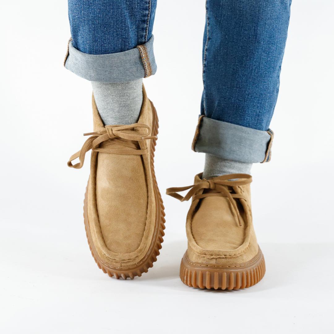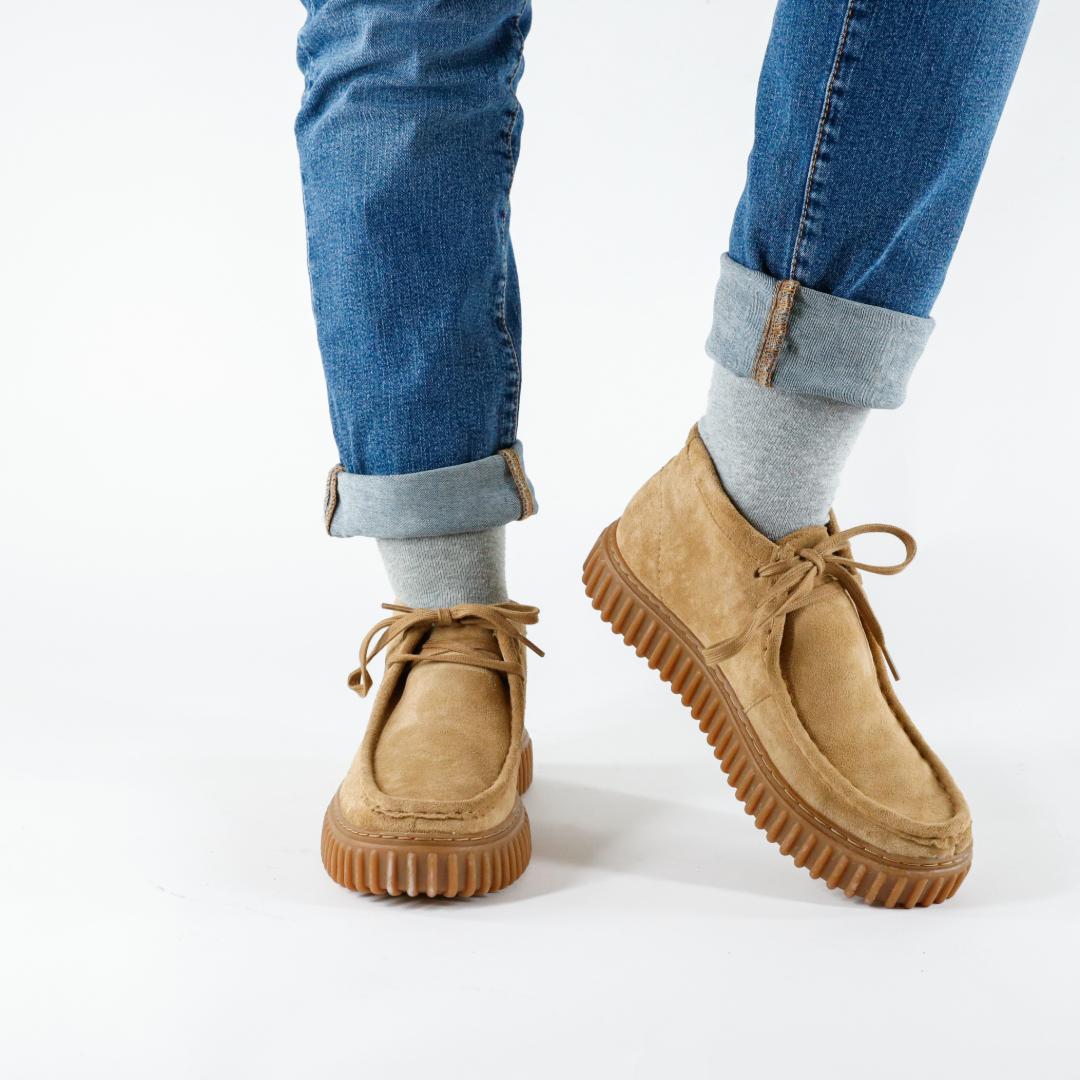 Le Clarks Torhill Hi arrivano direttamente dagli archivi storici con uno spiccato stile anni 90. Sono realizzate in camoscio beige con le forme inconfondibili delle iconiche Wallabee, caratterizzate da una robusta suola con inserto in EVA per un confort unico. Una vera scarpa casual di ispirazione storica.
