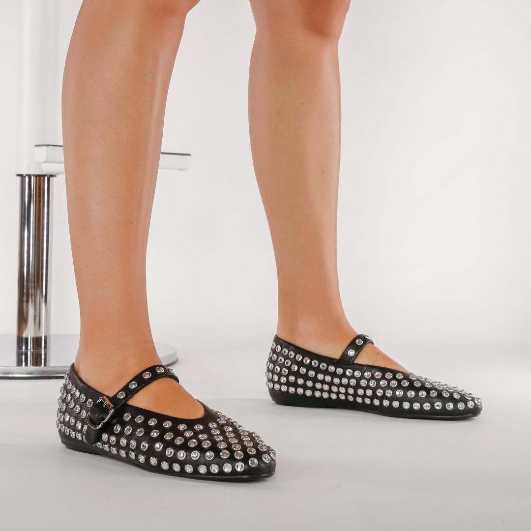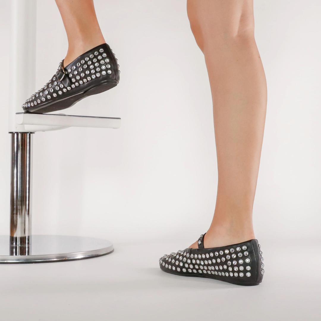 Le Ballerine sono la nuova tendenza di questa stagione. Sono realizzate in pelle nera con applicati dei luminosi piccoli strass, e un elegante cinturino con fibbia sul collo del piede. La silhouette moderna e il design molto femminile le rendono perfette per tutti i vostri outfit estivi. La linea CLUB STYLE è la nostra selezione dei modelli più cool della collezione SS 25 del CLUB, tutti made in Italy.