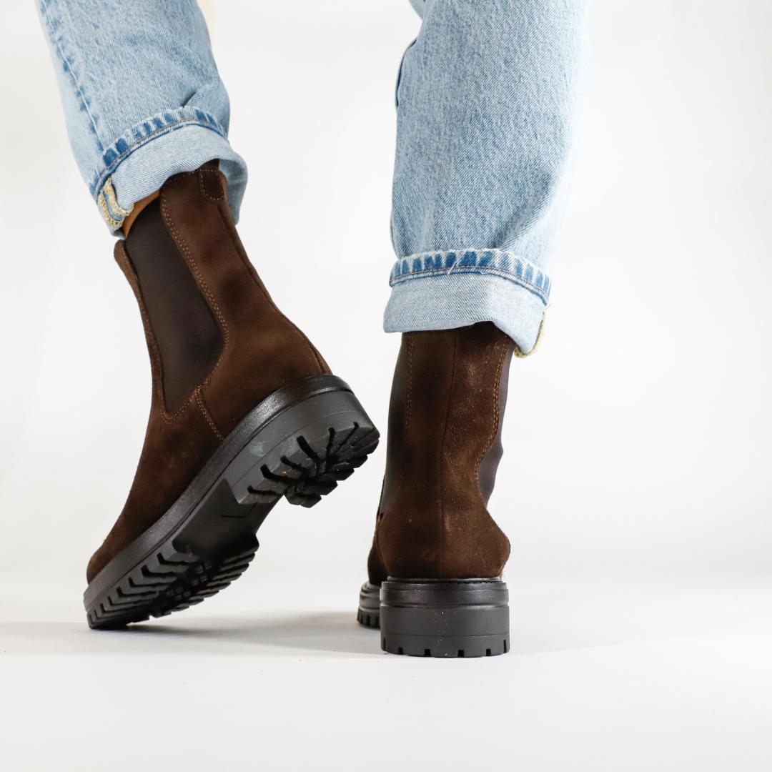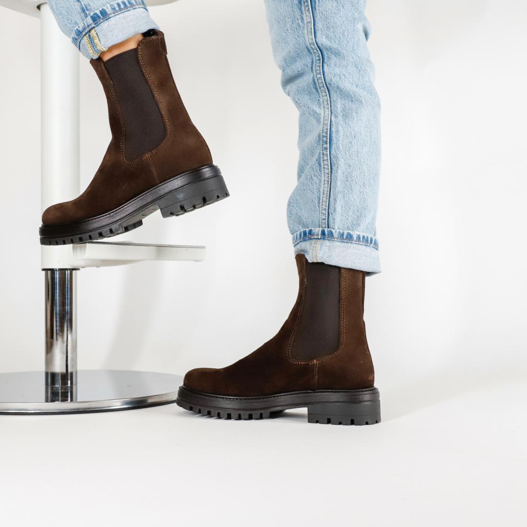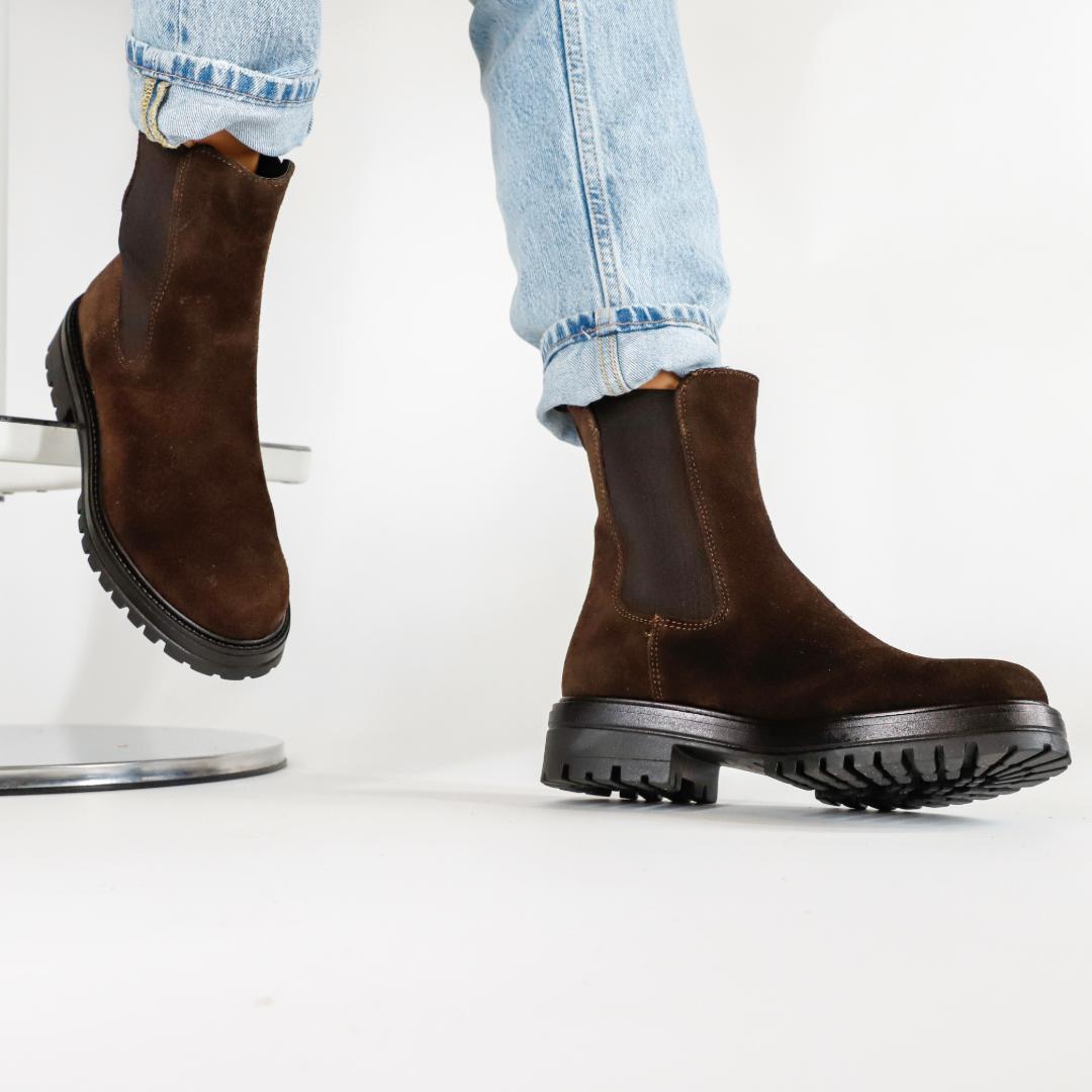 I Chelsea Boot Mid sono diventati un grande classico per affrontare l’inverno. Questi stivaletti chelsea sono realizzati in camoscio marrone su una suola con un lieve carro armato. La linea CLUB STYLE è la nostra selezione dei modelli più cool della collezione FW 25 del CLUB, tutti made in Italy.