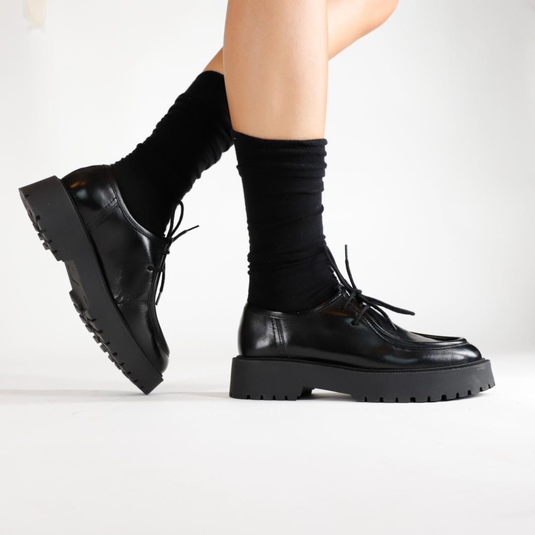 Le nuove Scarpe Allacciate Stile Paraboot sono realizzate in pelle nera, con la caratteristica cucitura a vista sulla punta. La linea CLUB STYLE è la nostra selezione dei modelli più cool della collezione FW 25 del CLUB, tutti made in Italy.