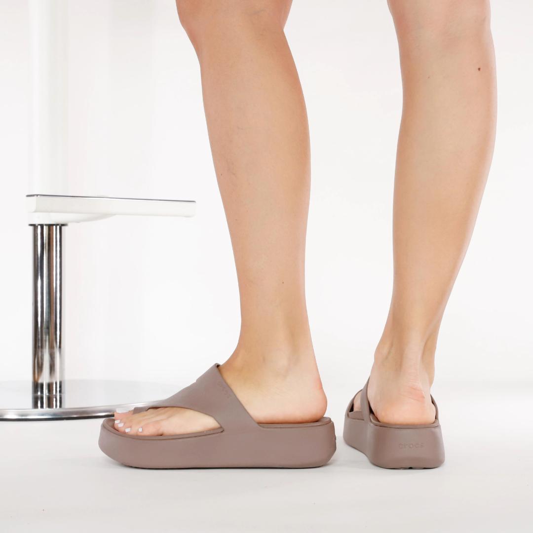 Le Crocs Getaway Platform Toe Loop sono le nuove ciabatte infradito color caffè latte leggerissime, con una leggera zeppa dallo stile semplice e molto versatile. Il plantare è dotato della tecnologia in schiuma Free Feel™ straordinariamente confortevole. Con la linea Getaway ti sembrerà di galleggiare e potrai muoverti senza più limiti.