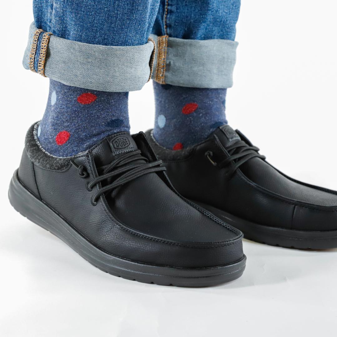 I mocassini HeyDude Paul Classic racchiudono il massimo comfort in un unico prodotto. La tomaia è realizzata in simil nabuk nero, con l’interno in tela fantasia. Il plantare morbido e l’intersuola con inserto imbottito contribuisce ad alleggerire il passo per un comodità e una leggerezza unica.