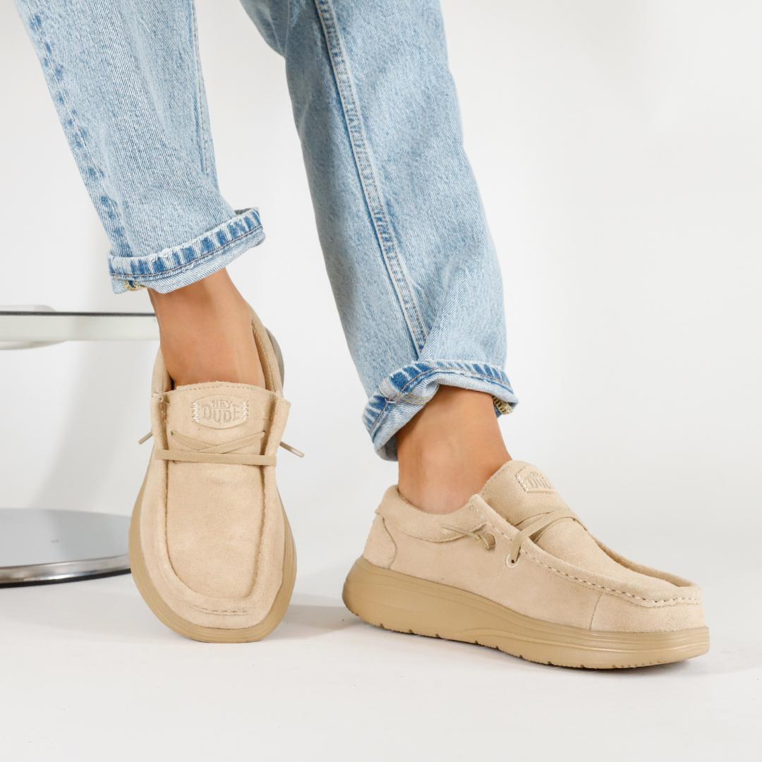 I mocassini HeyDude Wendy Conf racchiudono il massimo comfort in un unico prodotto. La tomaia è realizzata in camoscio beige, per un look elegante e tono su tono. La super morbida intersuola DUDEFLOAT in schiuma EVA, rendono queste HeyDude l’ideale per affrontare l’inverno con una comodità e una leggerezza unica.