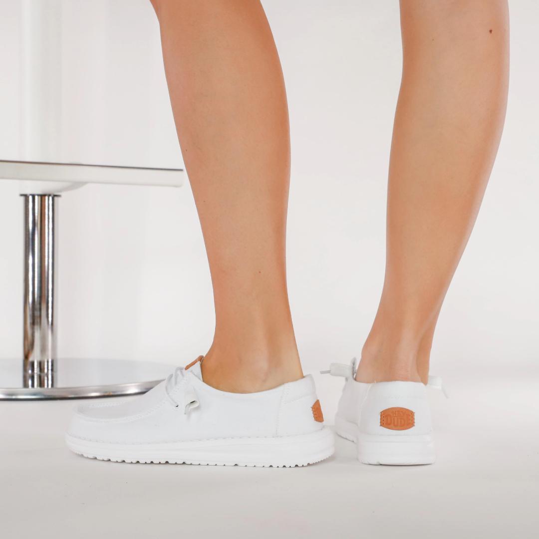 I mocassini HEYDUDE Wendy Stretch racchiudono il massimo comfort in un unico prodotto. La tomaia è realizzata in tessuto bianco, con il tallone beige rivestito in misto tela. Il plantare in morbido sughero contribuisce ad alleggerire il passo per un comodità e una leggerezza unica.