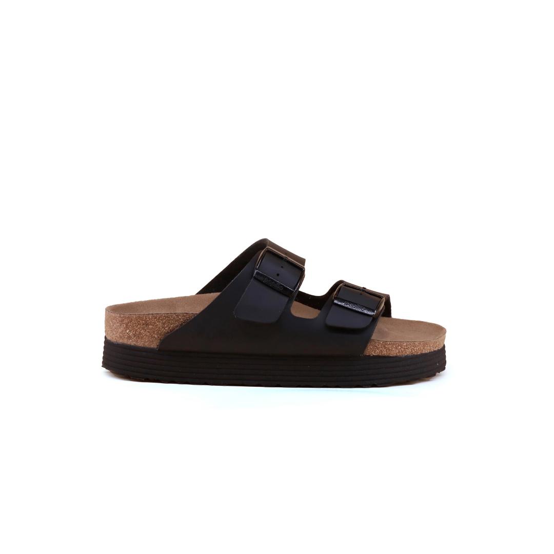 Le Birkenstock Arizona Platforms Bs sono l’evoluzione del grande classico del brand tedesco leader mondiale, della linea Vegan Papillo. La tomaia nera, è realizzata in materiale Birko-Flor dermoaffine e resistente, è regolabile individualmente con due cinturini. I plantari anatomici sono caratterizzati da un lieve platform.