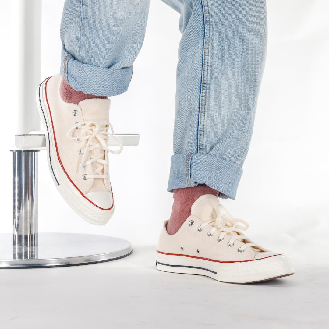 Le Converse Chuck 70 Low riprendono il design originale del 1970, aggiornato con materiali premium e una straordinaria attenzione ai dettagli. Sono realizzate in resistente tessuto beige, con la punta in gomma e il plantare interno OrthoLite per un comfort ottimale. Sono le scarpe più versatili in assoluto grazie al loro design semplice che non passa mai di moda.