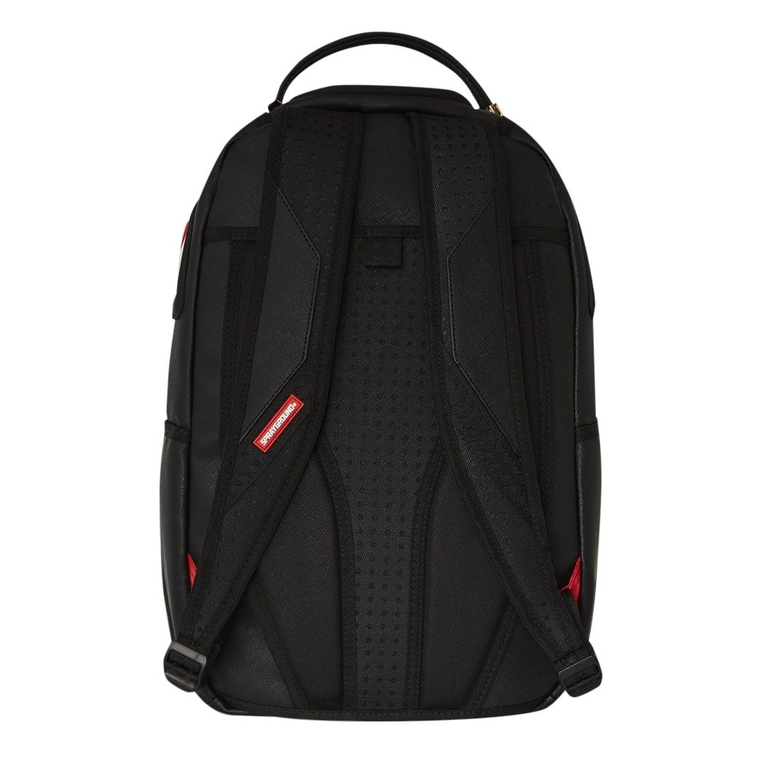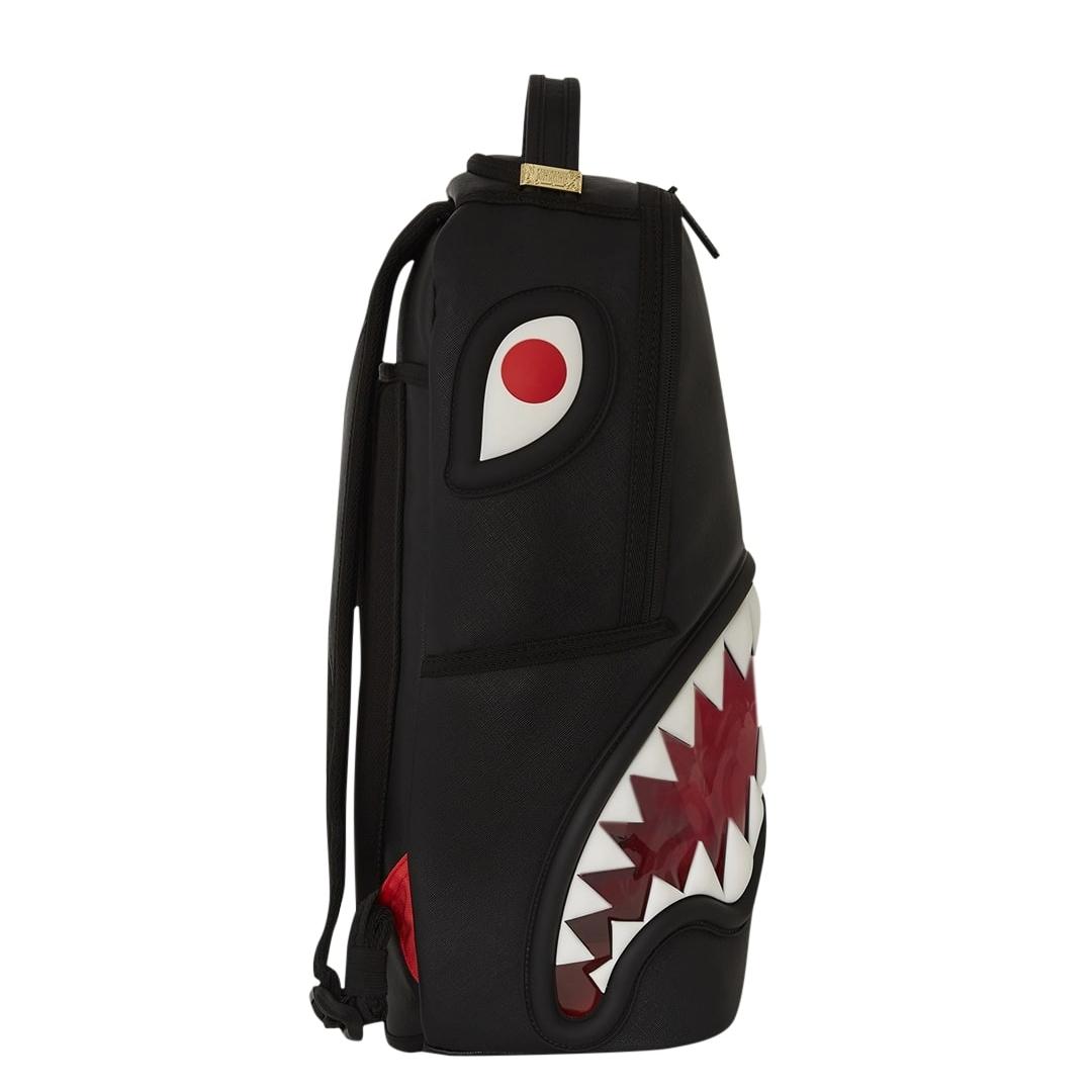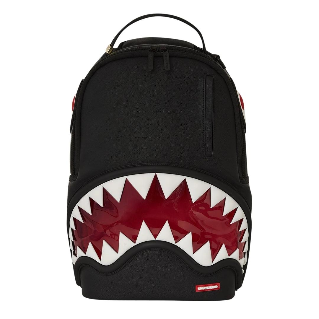 Lo zaino Sprayground presenta il suo iconico motivo con i denti di squalo in pvc trasparente applicato su uno sfondo rosso su ecopelle nera, impermeabile. Lo scomparto principale presenta uno tasca per laptop separato, mentre la parte posteriore nasconde un’imbottitura ergonomica in rete. Le cerniere e le cinghie regolabili permettono il massimo del confort.