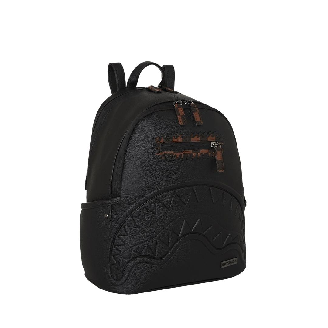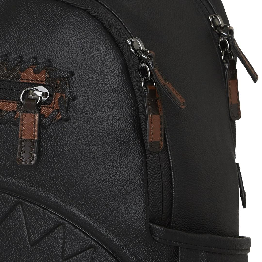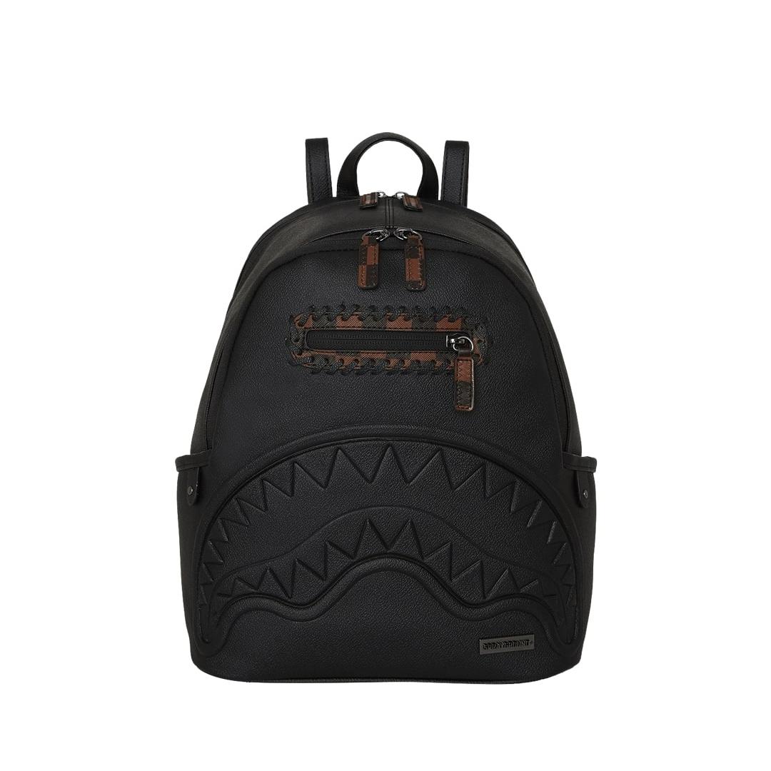 Lo zainetto Sprayground presenta il suo iconico motivo con i denti di squalo, realizzato su ecopelle impermeabile, con dettagli checkerboard nero e marrone. E’ composto da due scomparti principali con zip, tasche laterali e una tasca nascosta. All’interno troviamo una tasca organizer con cerniera, due tasche a bustina e una clip portachiavi Le cinghie regolabili permettono di adattare lo zainetto, assicurando un comfort unico.