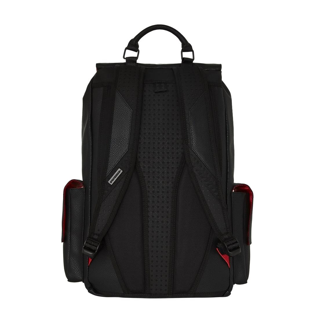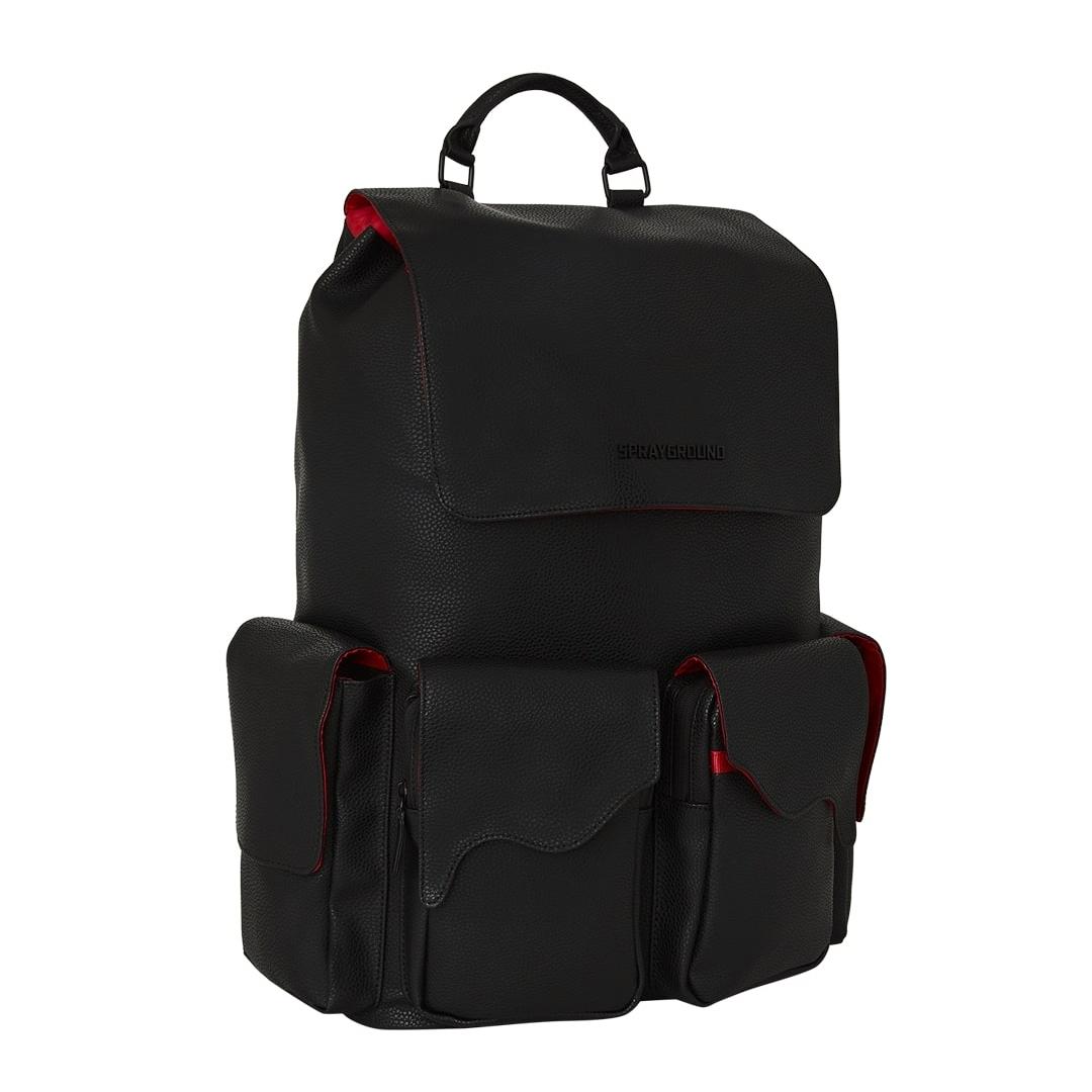 Lo zaino Sprayground è realizzato su ecopelle martellata nera impermeabile, con patta superiore e due tasche cargo laterali con fibbie in metallo smaltato regolabili e chiusura con coulisse. Lo scomparto principale presenta una tasca separata per laptop, mentre la parte posteriore nasconde un’imbottitura ergonomica in rete. Le cerniere e le cinghie regolabili consentono il massimo del confort.
