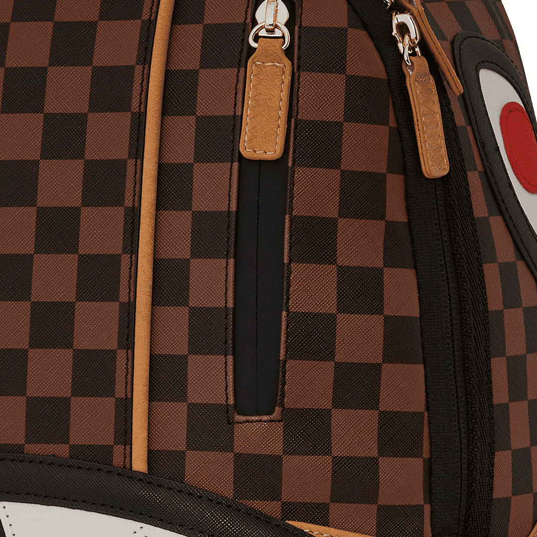 Lo zaino Sprayground presenta il suo iconico motivo con i denti di squalo su un ecopelle checkerboard nero e marrone con dettagli color cuoio, impermeabile. Lo scomparto principale presenta uno tasca per laptop separato, mentre la parte posteriore nasconde un’imbottitura ergonomica in rete. Le cerniere e le cinghie regolabili permettono il massimo del confort.