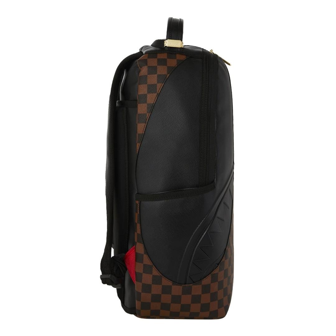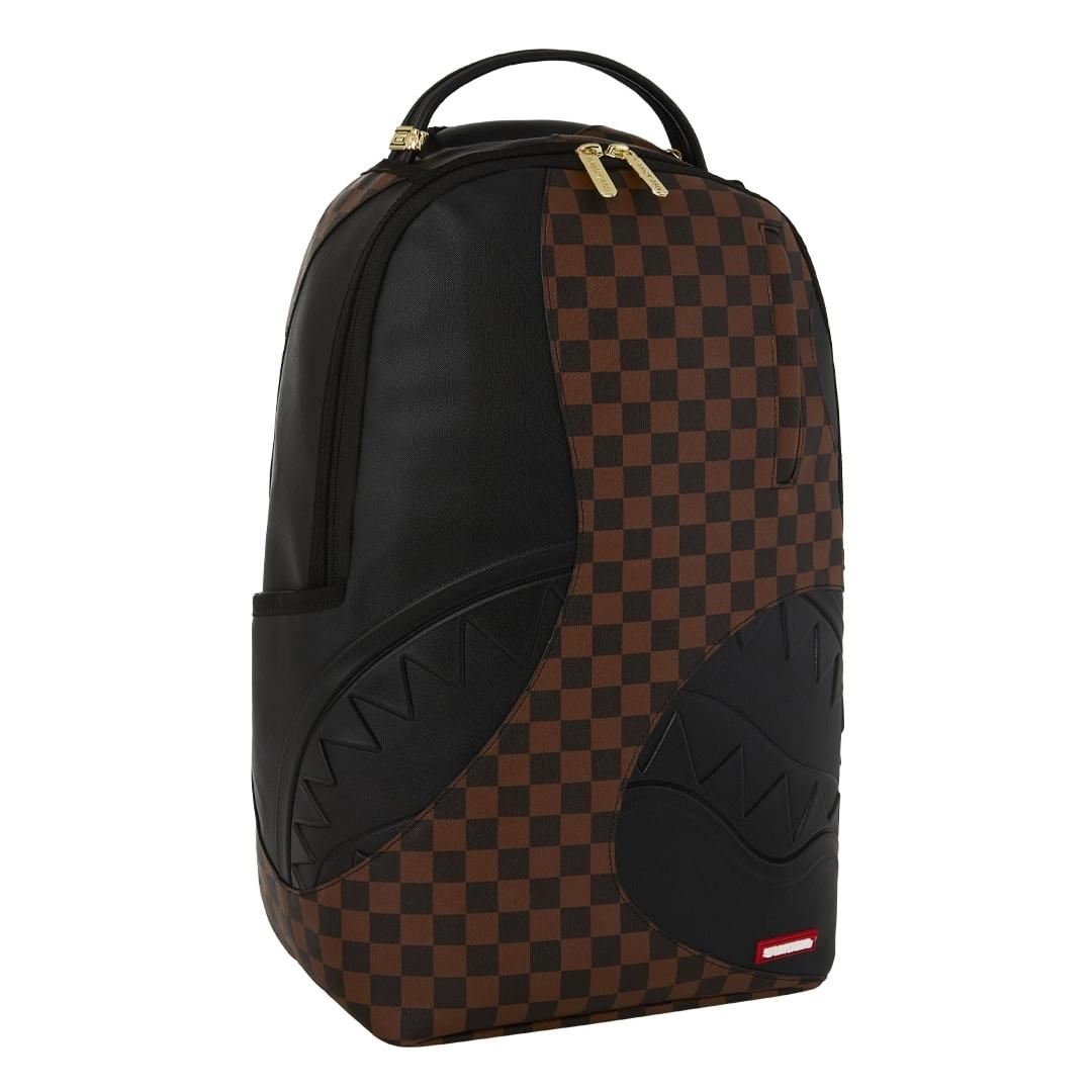 Lo zaino Sprayground presenta il suo iconico motivo con i denti di squalo realizzato in ecopelle nera, con inserti nell’inconfondibile checkerboard nero e marrone. Lo scomparto principale presenta una tasca separata per laptop, mentre la parte posteriore nasconde un’imbottitura ergonomica in rete. Le cerniere e le cinghie regolabili consentono il massimo del confort.