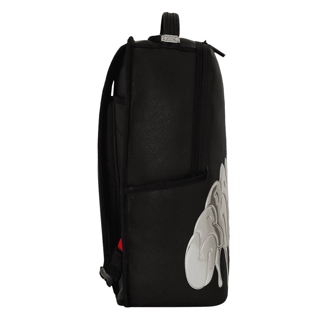 Lo zaino Sprayground è realizzato su ecopelle nera impermeabile, cone il logo in evidenza metallizato. Lo scomparto principale presenta una tasca separata per laptop, mentre la parte posteriore nasconde un’imbottitura ergonomica in rete. Le cerniere e le cinghie regolabili consentono il massimo del confort.