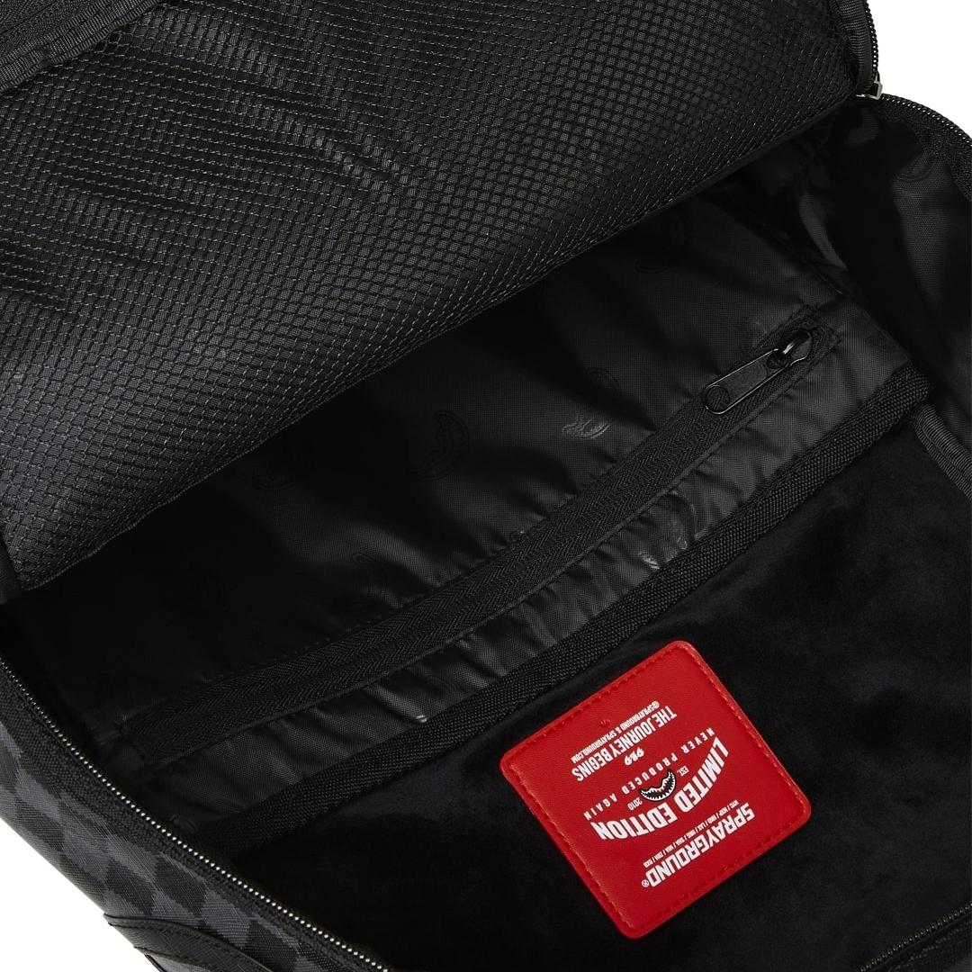 Lo zaino Sprayground presenta il suo iconico motivo con i denti di squalo su un ecopelle checkerboard nero e grigio impermeabile, con inserti in ecopelle nera. Lo scomparto principale presenta uno tasca per laptop separato, mentre la parte posteriore nasconde un’imbottitura ergonomica in rete. Le cerniere e le cinghie regolabili permettono il massimo del confort.