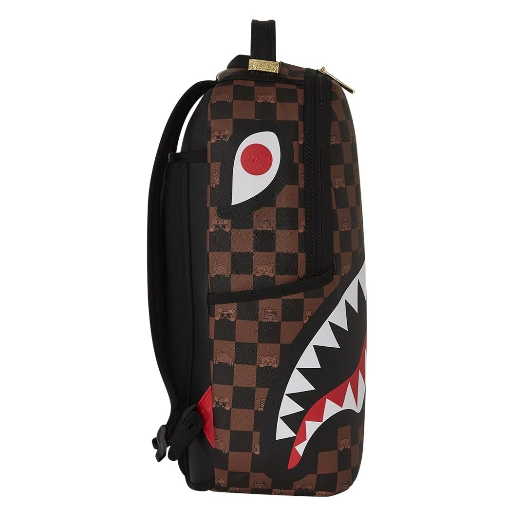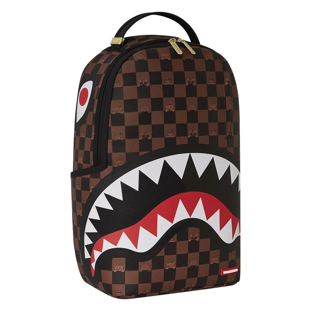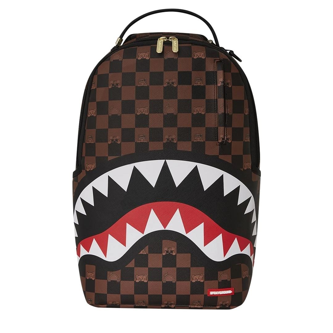 Lo zaino Sprayground presenta il suo iconico motivo con i denti di squalo su ecopelle checkerboard nero e marrone con piccoli disegni tra gli scacchi, impermeabile. Lo scomparto principale presenta uno tasca per laptop separato, mentre la parte posteriore nasconde un’imbottitura ergonomica in rete. Le cerniere e le cinghie regolabili permettono il massimo del confort.