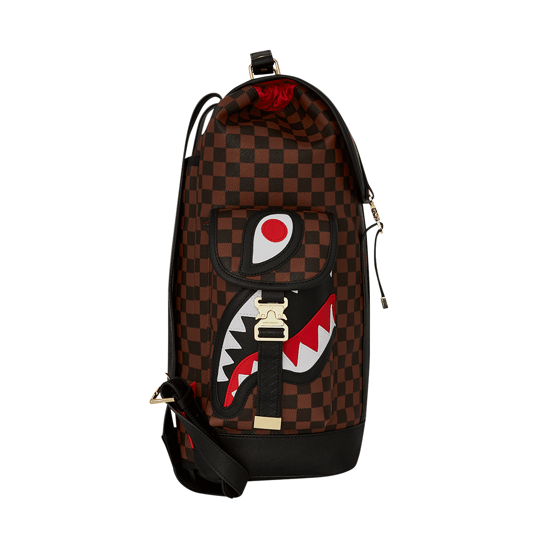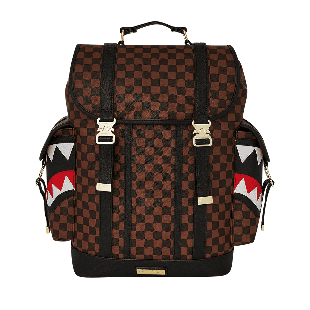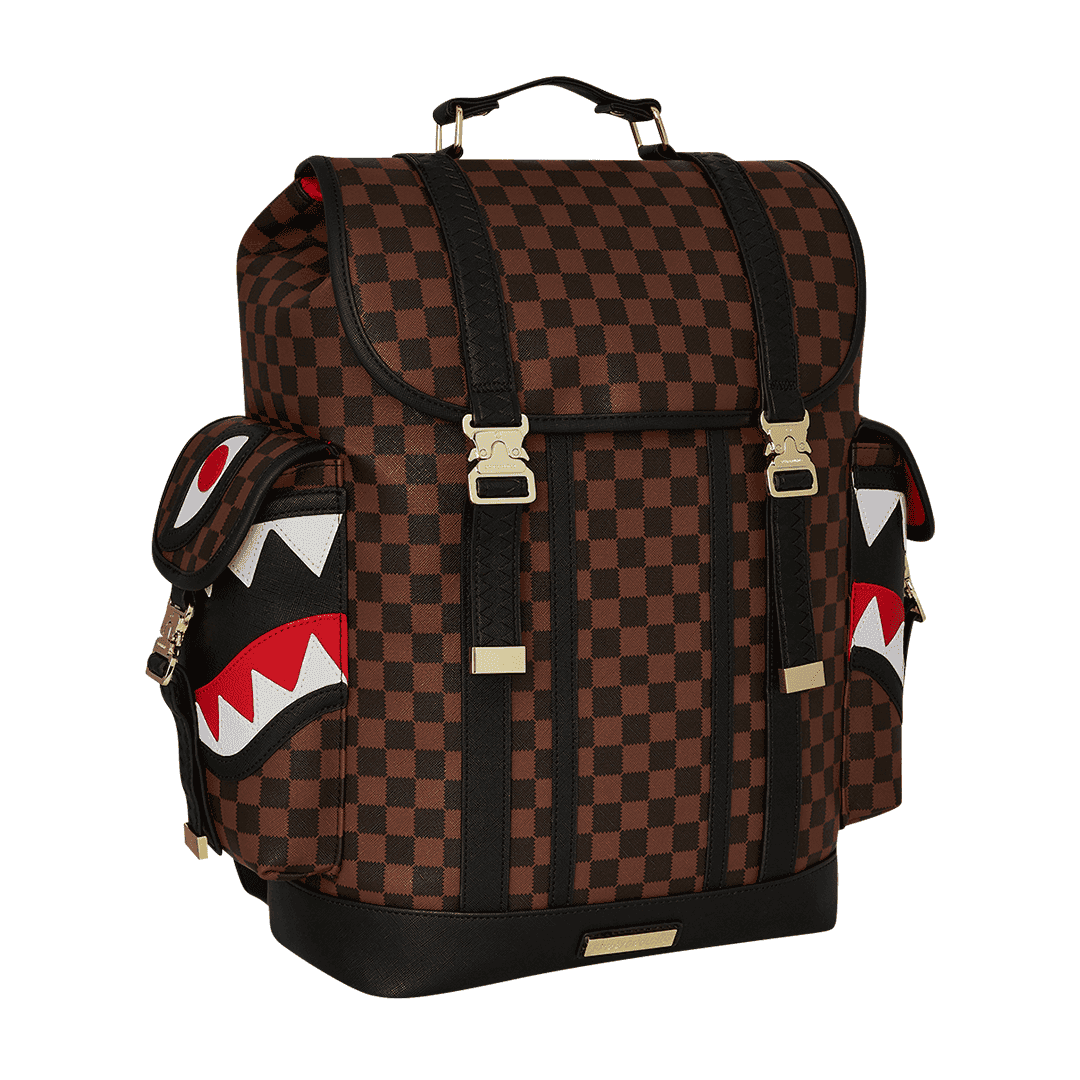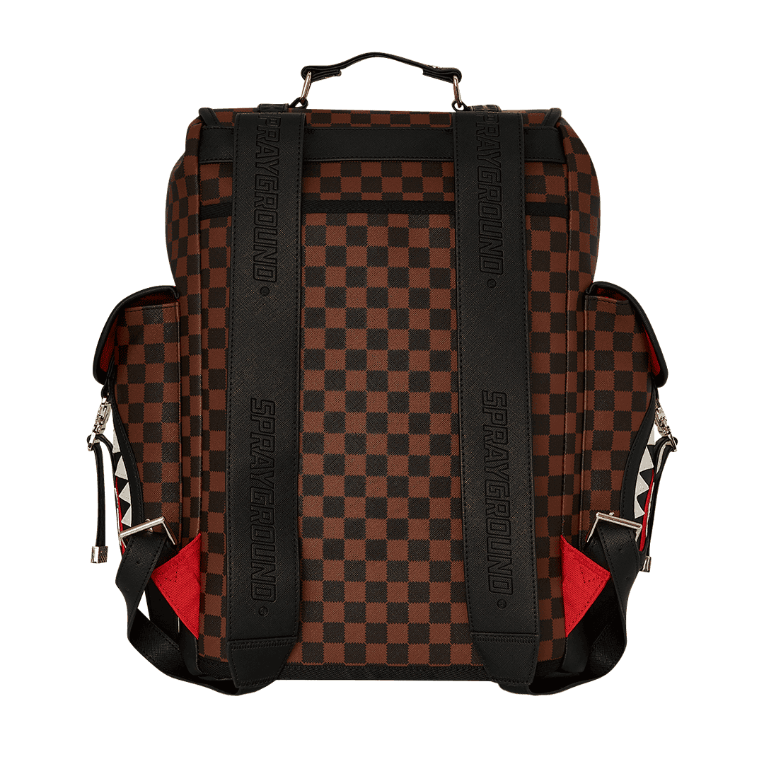 Lo zaino Sprayground è realizzato su ecopelle checkerboard nero e marrone, impermeabile, con patta superiore e due tasche cargo laterali con fibbie in metallo smaltato regolabili e chiusura con coulisse. Lo scomparto principale presenta una tasca separata per laptop, mentre la parte posteriore nasconde un’imbottitura ergonomica in rete. Le cerniere e le cinghie regolabili consentono il massimo del confort.