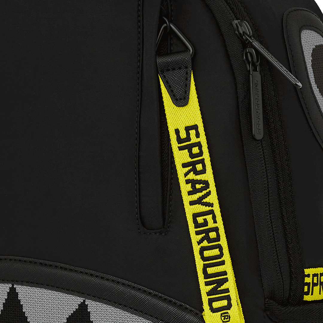 Lo zaino Sprayground presenta il suo iconico motivo con i denti di squalo su tessuto nero impermeabile, con dettagli gialli multilogo. Lo scomparto principale presenta una tasca separata per laptop, mentre la parte posteriore nasconde un’imbottitura ergonomica in rete. Le cerniere e le cinghie regolabili consentono il massimo del confort.