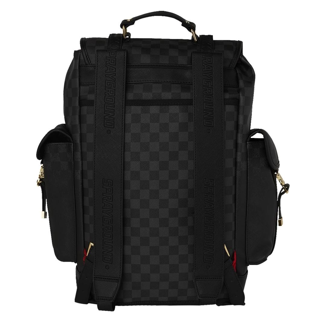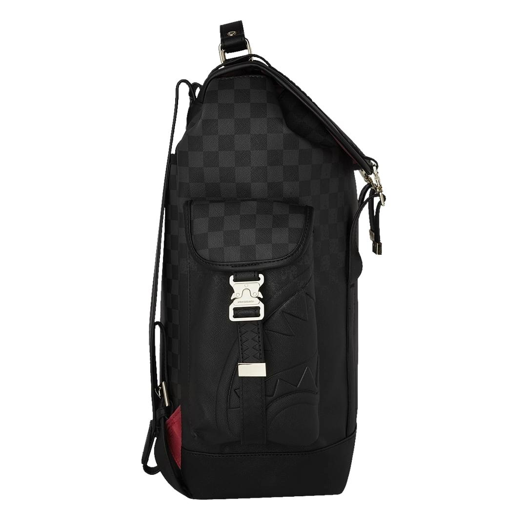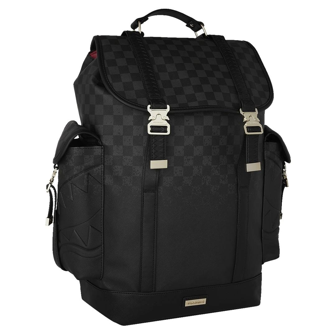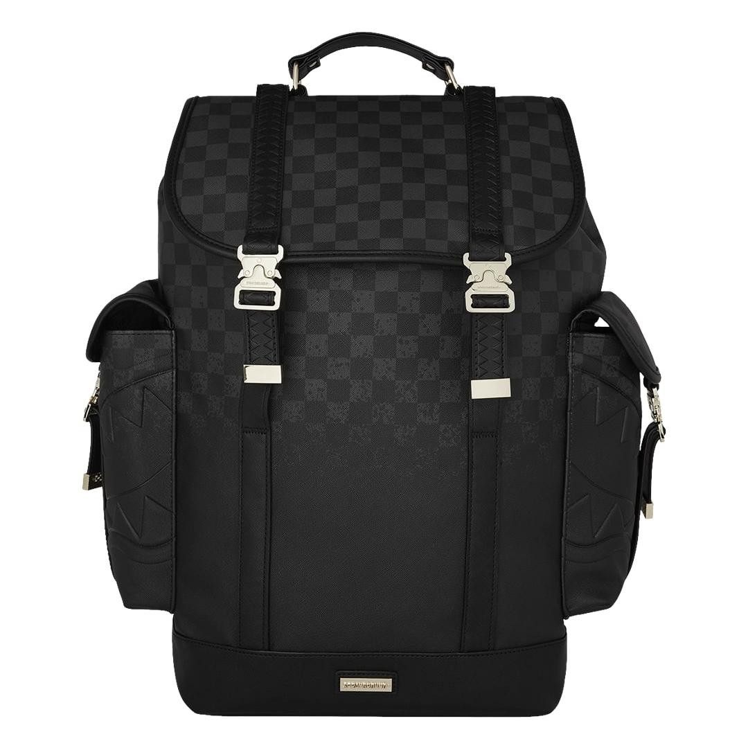 Lo zaino Sprayground è realizzato su ecopelle checkerboard nero e grigio con effetto sfumato, impermeabile, con patta superiore e due tasche cargo laterali con fibbie in metallo smaltato regolabili e chiusura con coulisse. Lo scomparto principale presenta una tasca separata per laptop, mentre la parte posteriore nasconde un’imbottitura ergonomica in rete. Le cerniere e le cinghie regolabili consentono il massimo del confort.