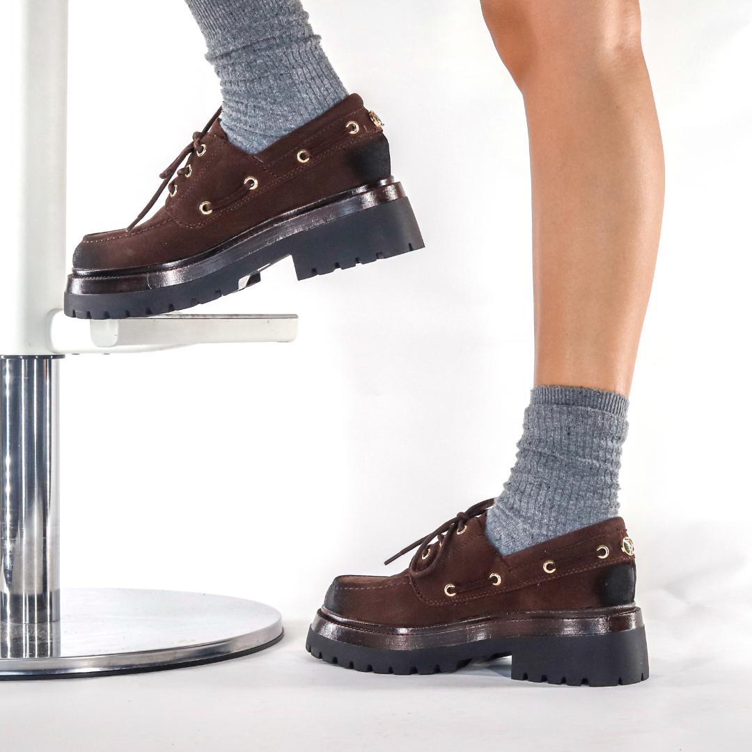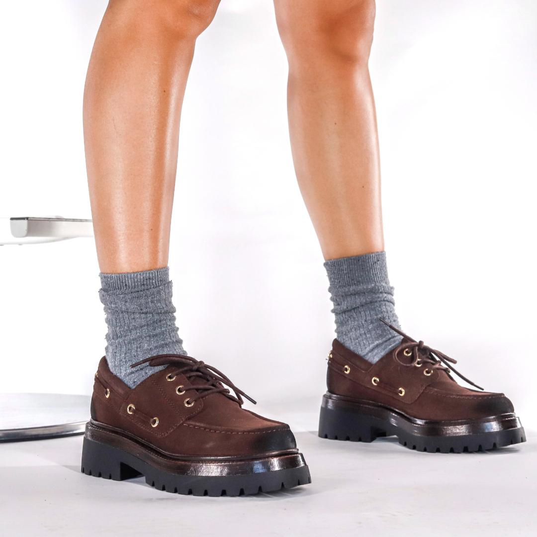 I mocassini di Steve Madden Detroit sono la nuova tendenza per questa stagione. Il design richiama alle scarpe da barca, ma con una suola carro armato super moderna. Realizzate in camoscio marrone, con raffinate finiture, e allacciatura a 3 fori. Sono un vero must-have ideale per look sia formali che casual, che aggiungerà un tocco sofisticato ai vostri outfit.