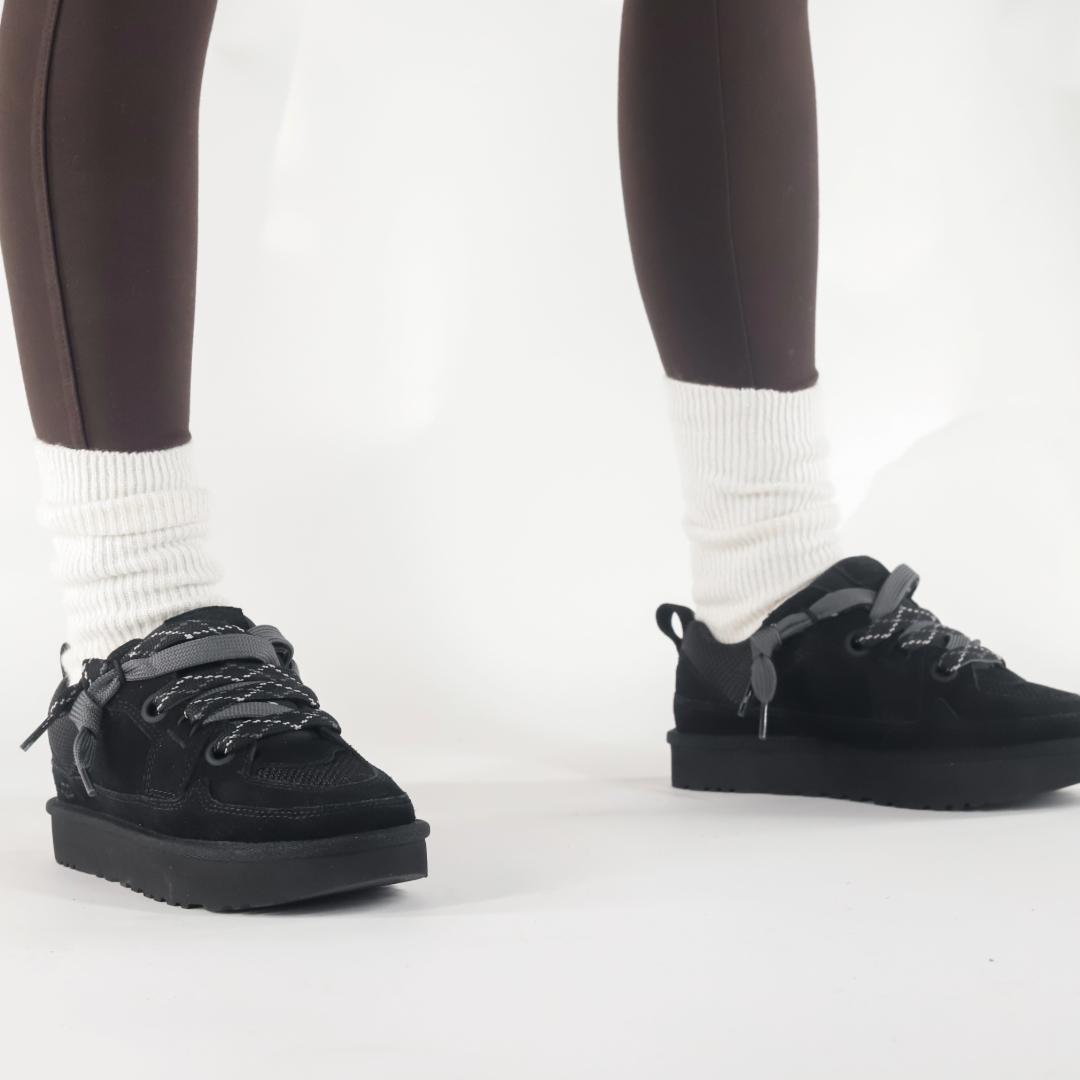 Le UGG Low Lowmel sono la vera novità per questa stagione della collezione di UGG. Il profilo basso alla caviglia, e i doppi lacci la rendono l’ideale per qualsiasi outfit. La tomaia è caratterizzata da un mix testurizzato di morbido camoscio nero e tessuto, per uno stile decisamente da sneaker. La leggera suola in EVA offre un comfort impareggiabile che permettendo di indossarla in qualsiasi situazione.
