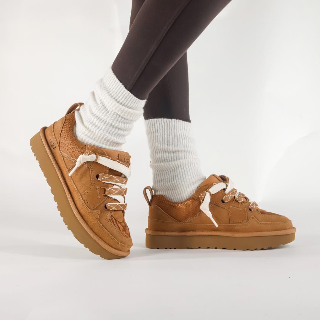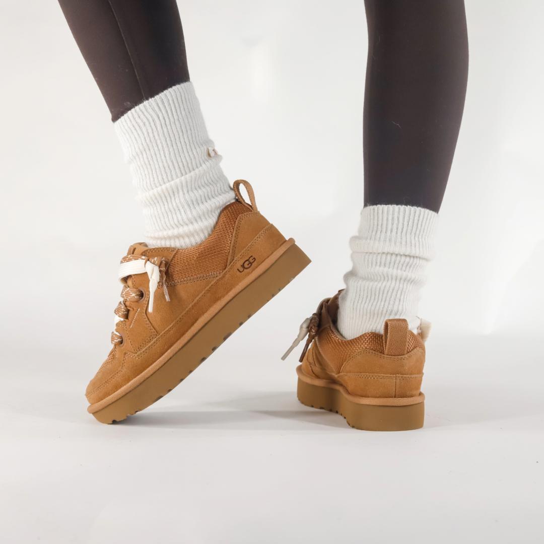 Le UGG Low Lowmel sono la vera novità per questa stagione della collezione di UGG. Il profilo basso alla caviglia, e i doppi lacci la rendono l’ideale per qualsiasi outfit. La tomaia è caratterizzata da un mix testurizzato di morbido camoscio color nocciola e tessuto, per uno stile decisamente da sneaker. La leggera suola in EVA offre un comfort impareggiabile che permettendo di indossarla in qualsiasi situazione.