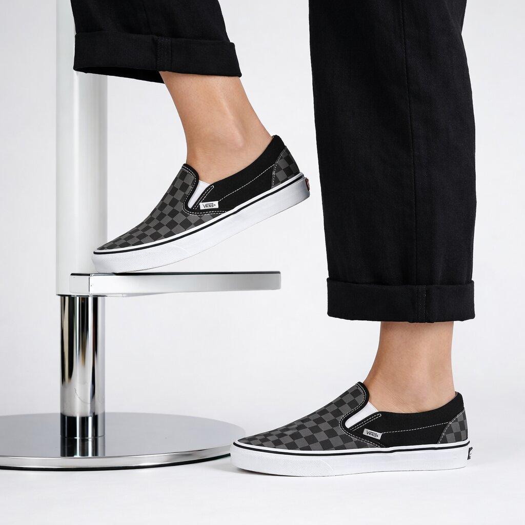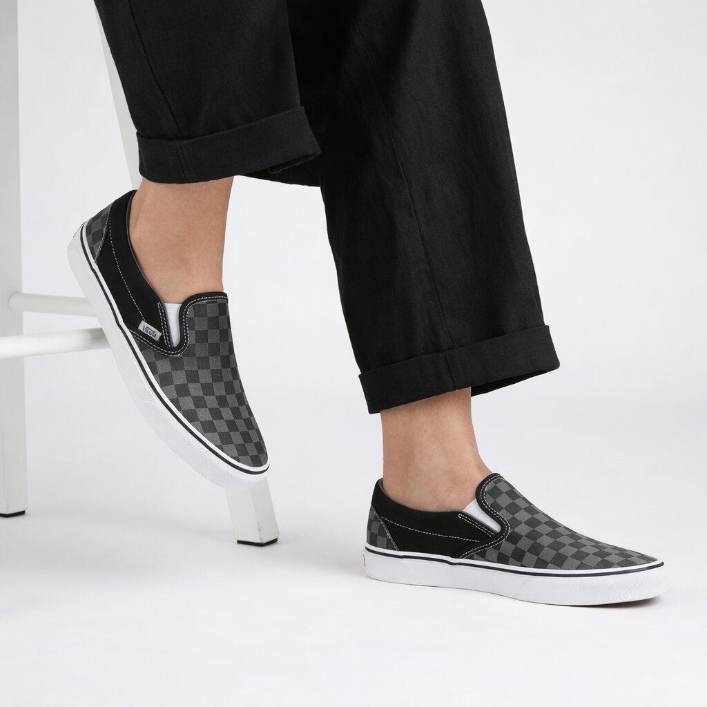 Le VANS Slip-On Checkerboard grigio nero sono sneakers Vans iconiche perfette per chi cerca scarpe streetwear comode, originali e facili da indossare. Questo modello storico del brand californiano, diventato celebre nella cultura skate e nella moda urbana, si distingue per il design senza lacci e la leggendaria fantasia checkerboard bianco e nero.