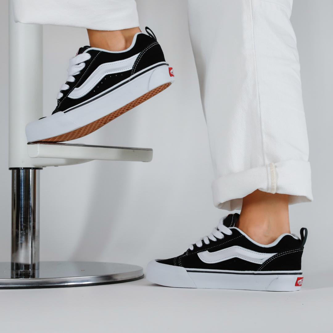 Le VANS Knu Skool sono le nuove sneakers da skate rivisitate in stile anni ’90 e ispirata ai dettagli voluminosi dei modelli dell’epoca. Realizzata con una robusta tomaia in pelle scamosciata nera, questa silhouette dal profilo basso presenta linguetta e collo super imbottiti, per un look voluminoso ispirato alle Old Skool originali. Questo modello presenta inoltre l’iconica Sidestripe sagomata in 3D, per aggiungere un ulteriore tocco di stile al look voluminoso della scarpa. Sono dotate anche di linguetta sul tallone per indossare e sfilare la scarpa con facilità.